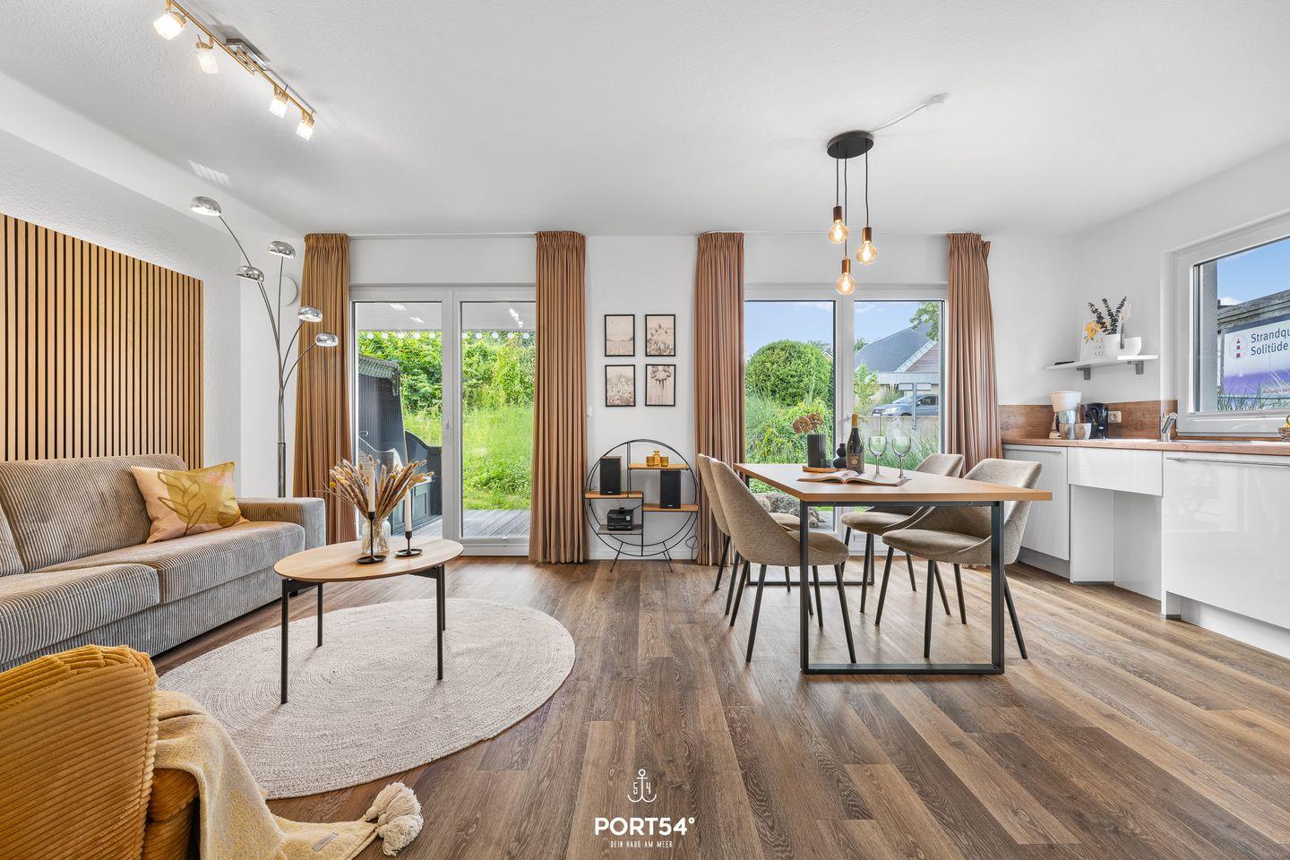 Die schöne Ferienwohnung "Solibeach" bietet Platz für insgesamt 4 Personen, von denen 2 im Schlafzimmer mit Doppelbett und 2 weitere auf einer hochwertigen Funktionscouch im Wohnzimmer schlafen können. Der kombinierte Wohn- und Essbereich mit einer modernen, offenen Einbauküche. Die komplette Wohnung verfügt über eine Fußbodenheizung.