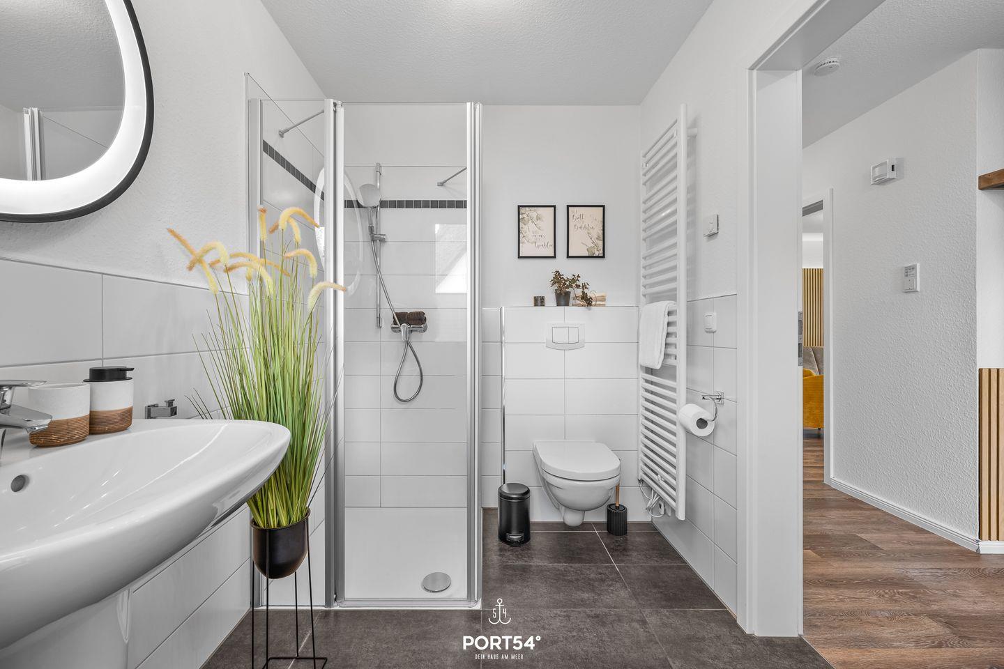 Ein modernes Badezimmer mit Tageslicht.