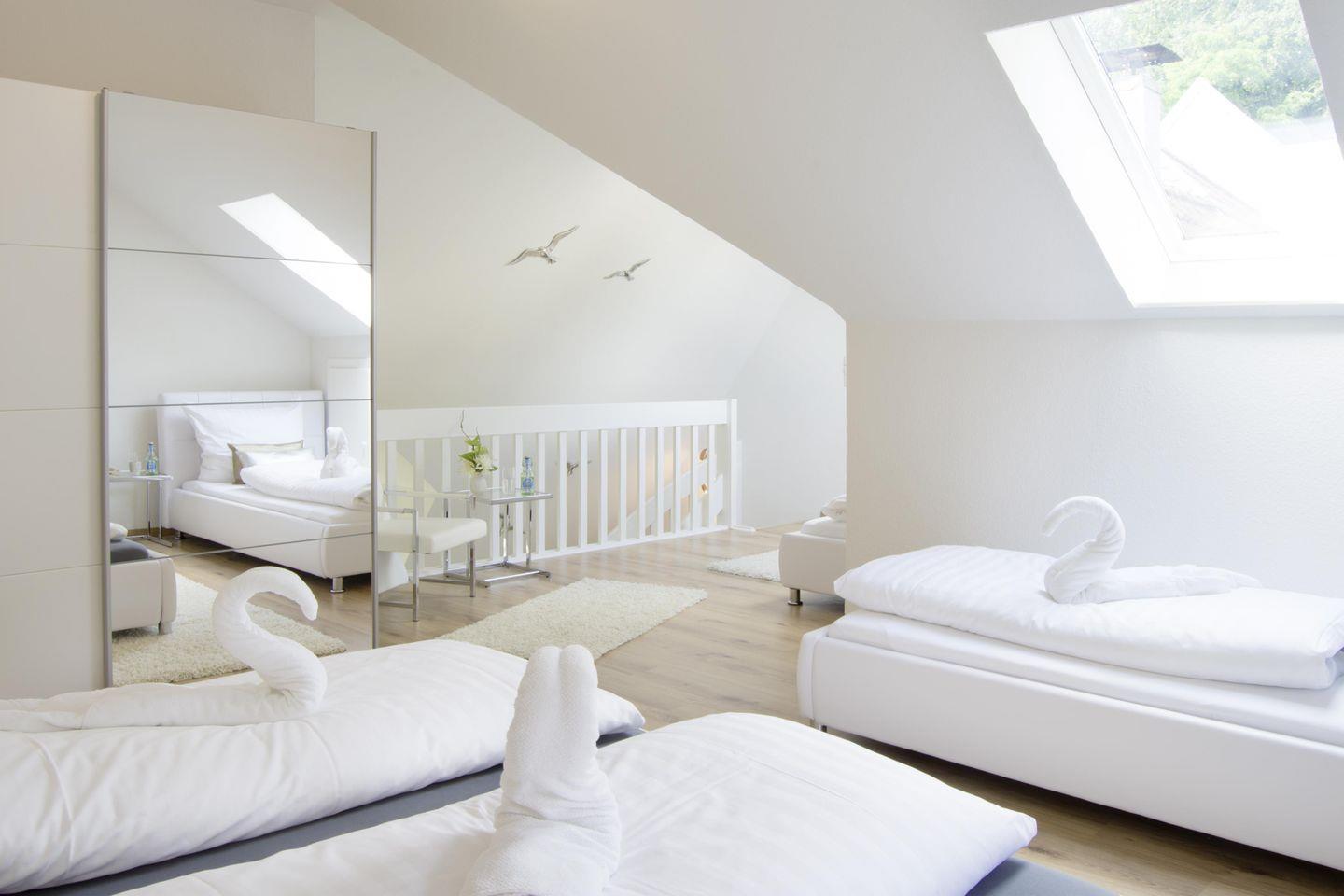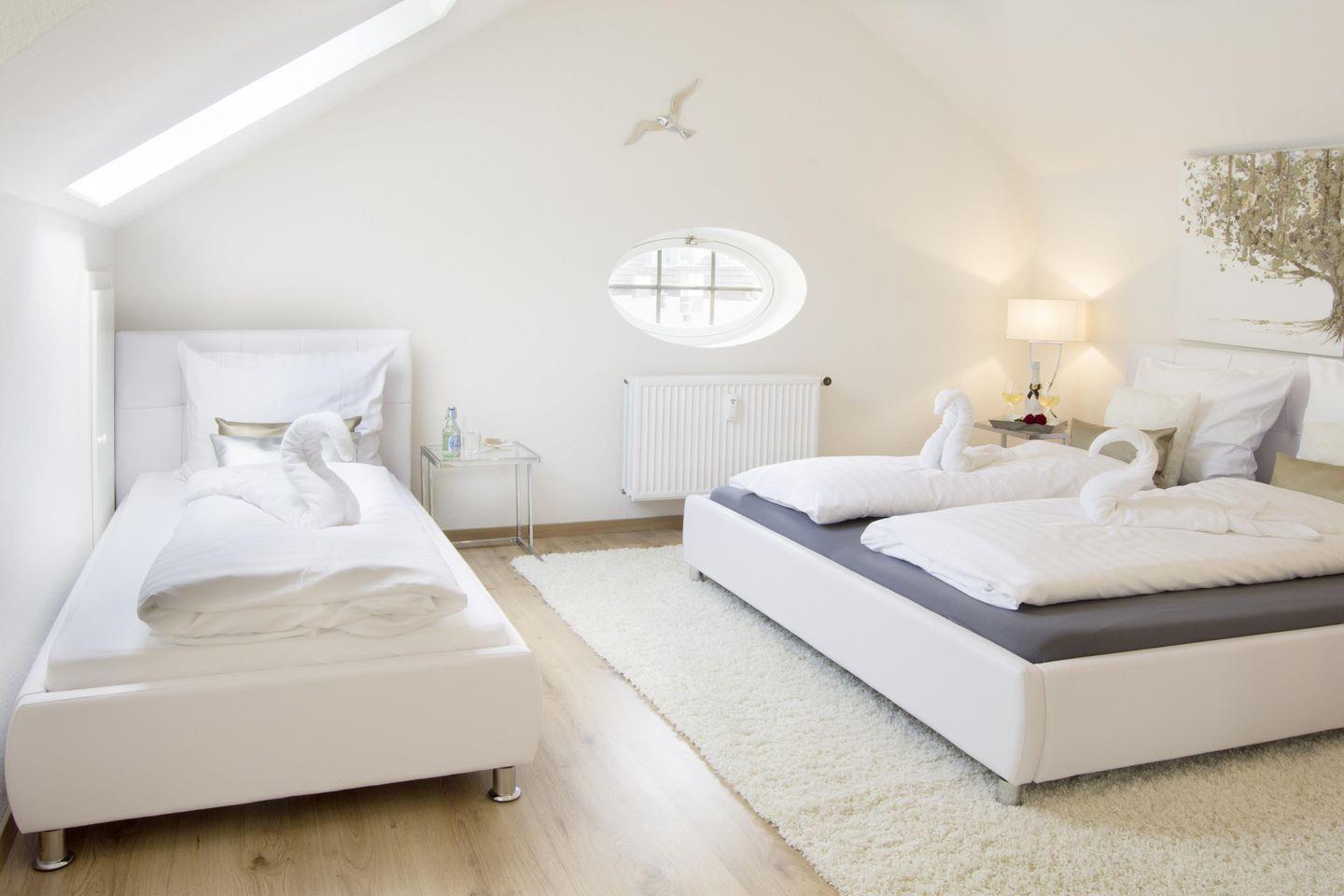 Die im modernen Stil gehaltene & hochwertig eingerichtete Maisonette-Wohnung im 3. OG bietet Ihnen auf 68 m² Platz für bis zu 4 Personen. Der lichtdurchflutete Wohnbereich mit angrenzender, vollausgestatteter Küche lässt keine Wünsche offen. Vom Wohnzimmer aus führt eine Treppe in das offen gehaltene Schlafzimmer, in dem sich ein gemütliches Doppelbett und 2 Einzelbetten befinden. Das großzügige Badezimmer verfügt über eine ebenerdige Dusche.
