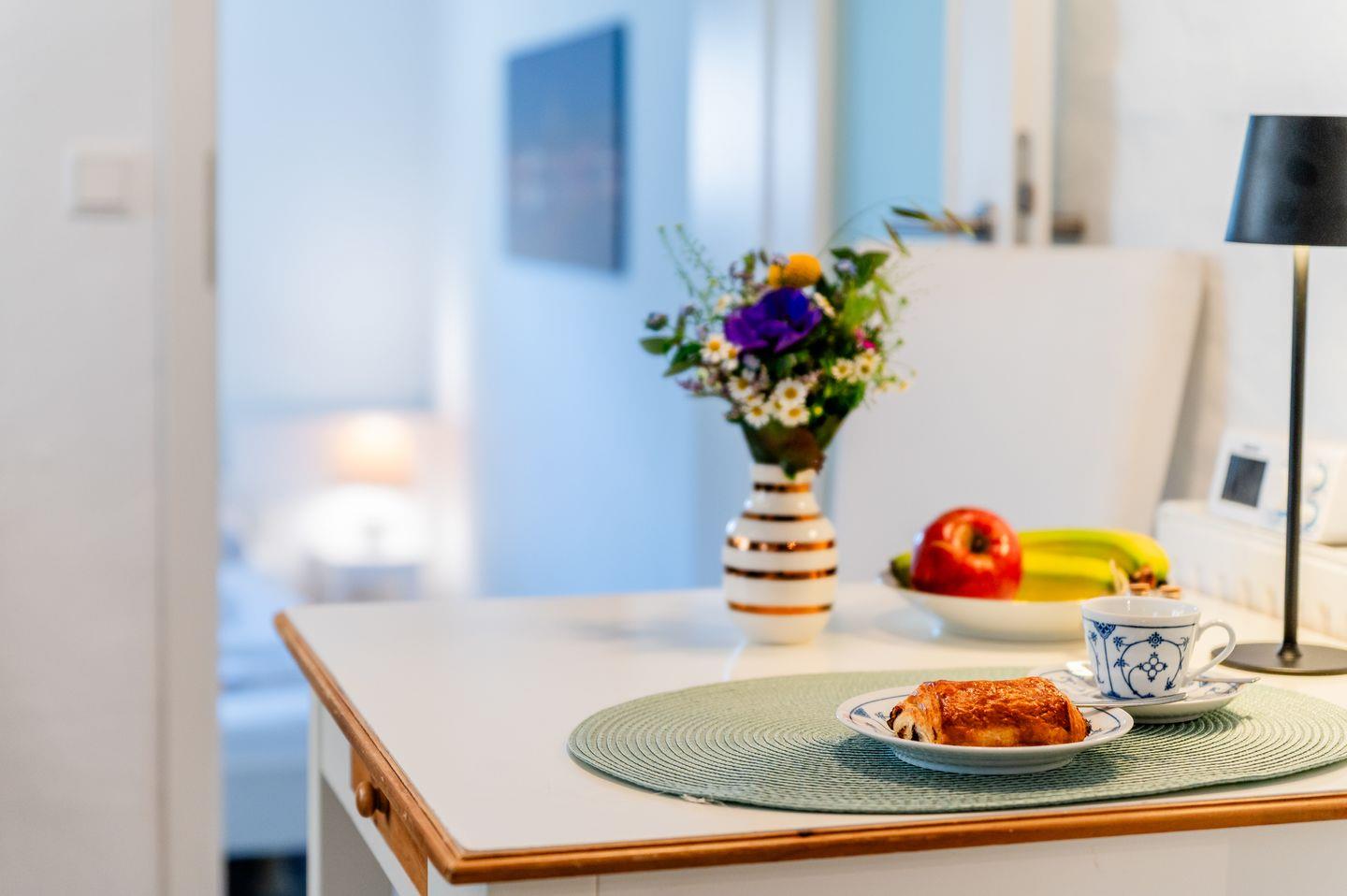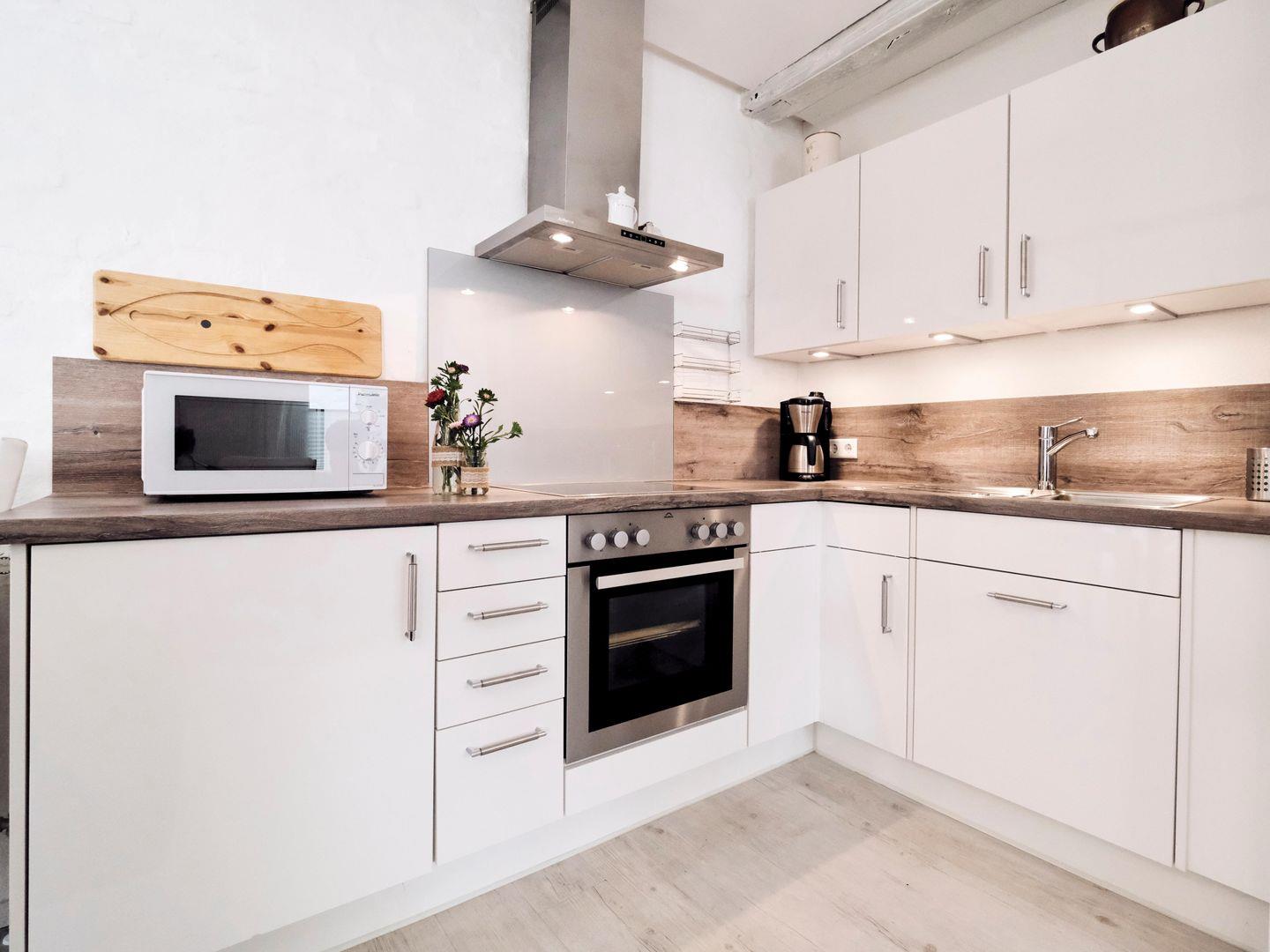 Moderne Ferienwohnung "Am Hafen" in Flensburgs Altstadt, zentral gelegen, mit offener Küche, gemütlichem Schlafzimmer und stilvollem Bad.