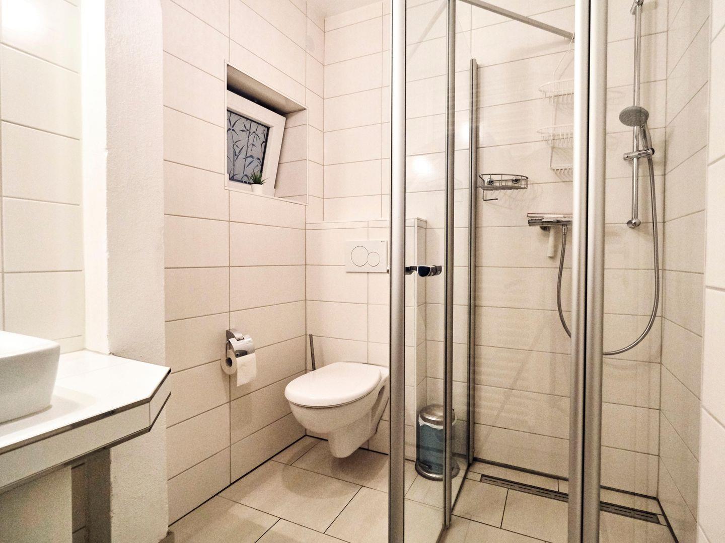 Das Badezimmer ist ein weiteres Highlight der Wohnung. Es wurde ebenfalls vollständig erneuert und verfügt über eine ebenerdige Dusche, ein WC sowie einen beheizten Handtuchhalter, der für zusätzlichen Komfort sorgt.