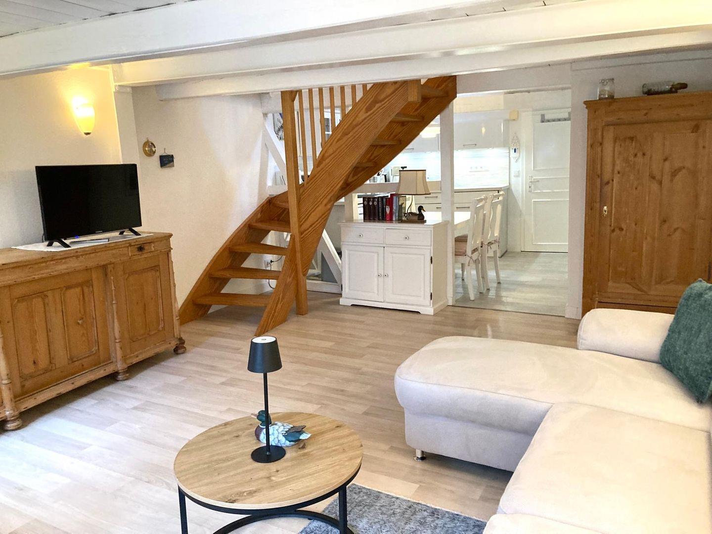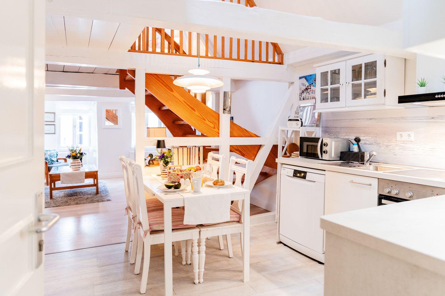 Willkommen in eurer Kapitänswohnung – einem besonderen Rückzugsort im Herzen Flensburgs. In einem denkmalgeschützten Fachwerkhaus aus dem 16. Jahrhundert gelegen, erstreckt sich diese liebevoll eingerichtete Ferienwohnung über zwei Ebenen und vereint historischen Charme mit modernem Komfort.