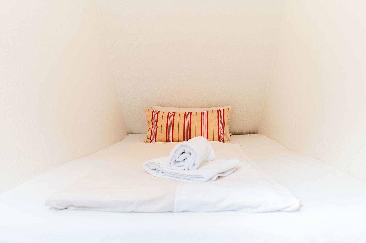 Über die Treppe gelangt ihr zu den beiden Schlafzimmern. Freut euch auf erholsame Nächte in eurem neuen, komfortablen Boxspringbett (1,80 x 2,00 m). Dank der hochwertigen Matratze und der luxuriösen Schlafqualität wird jede Nacht zu purer Entspannung – perfekt, um neue Energie für eure Erkundungstouren durch Flensburg zu tanken. Das zweite separate Schlafzimmer mit einem Doppelbett (1,40 x 2,00 m) eignet sich perfekt für Familien mit (größeren) Kindern oder Freunde, die gemeinsam reisen.