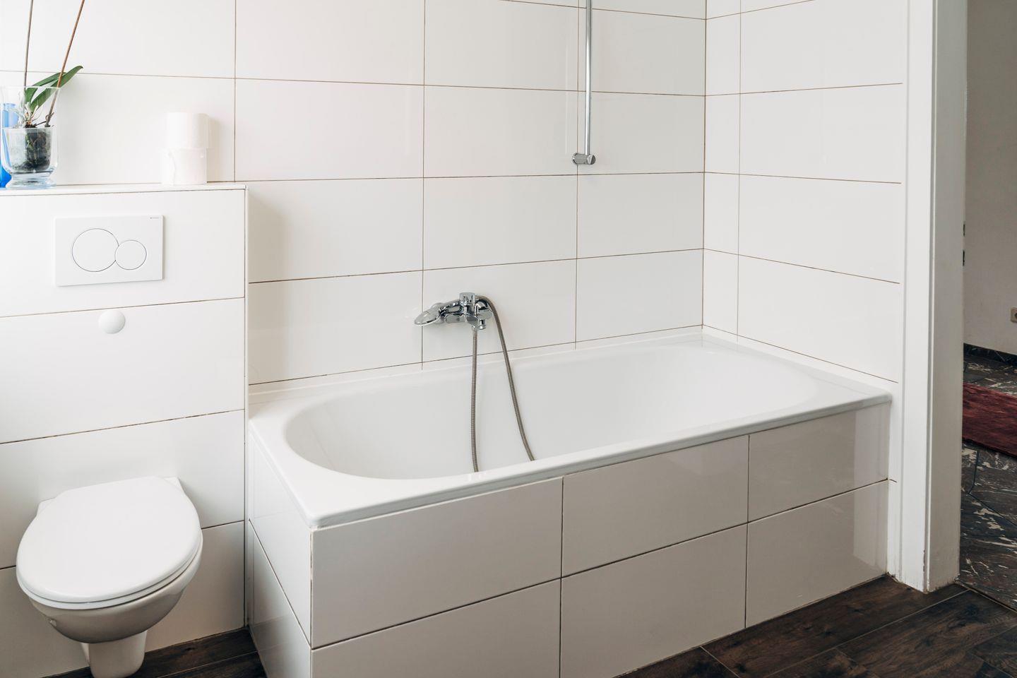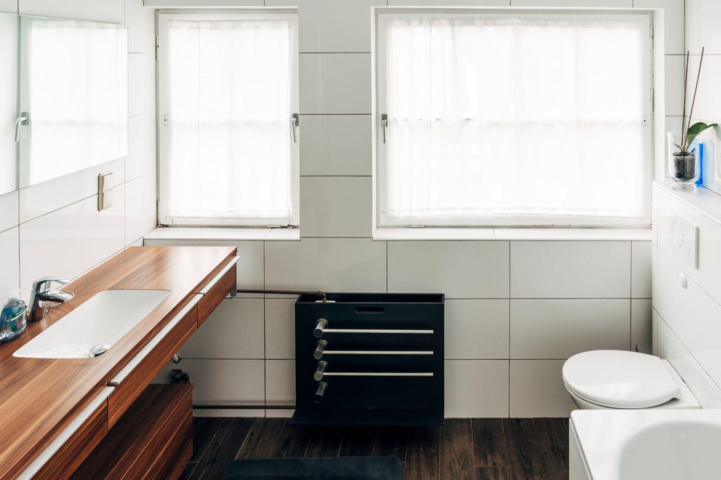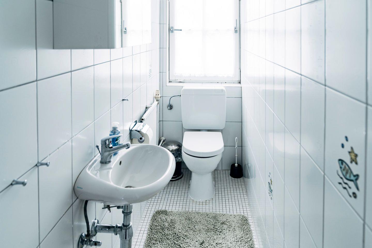 In der Wohnung befindet sich ein großes Tageslicht-Badezimmer mit Dusche und Badewanne und ein separates kleines Gäste-WC, mit Waschbecken und Toilette.