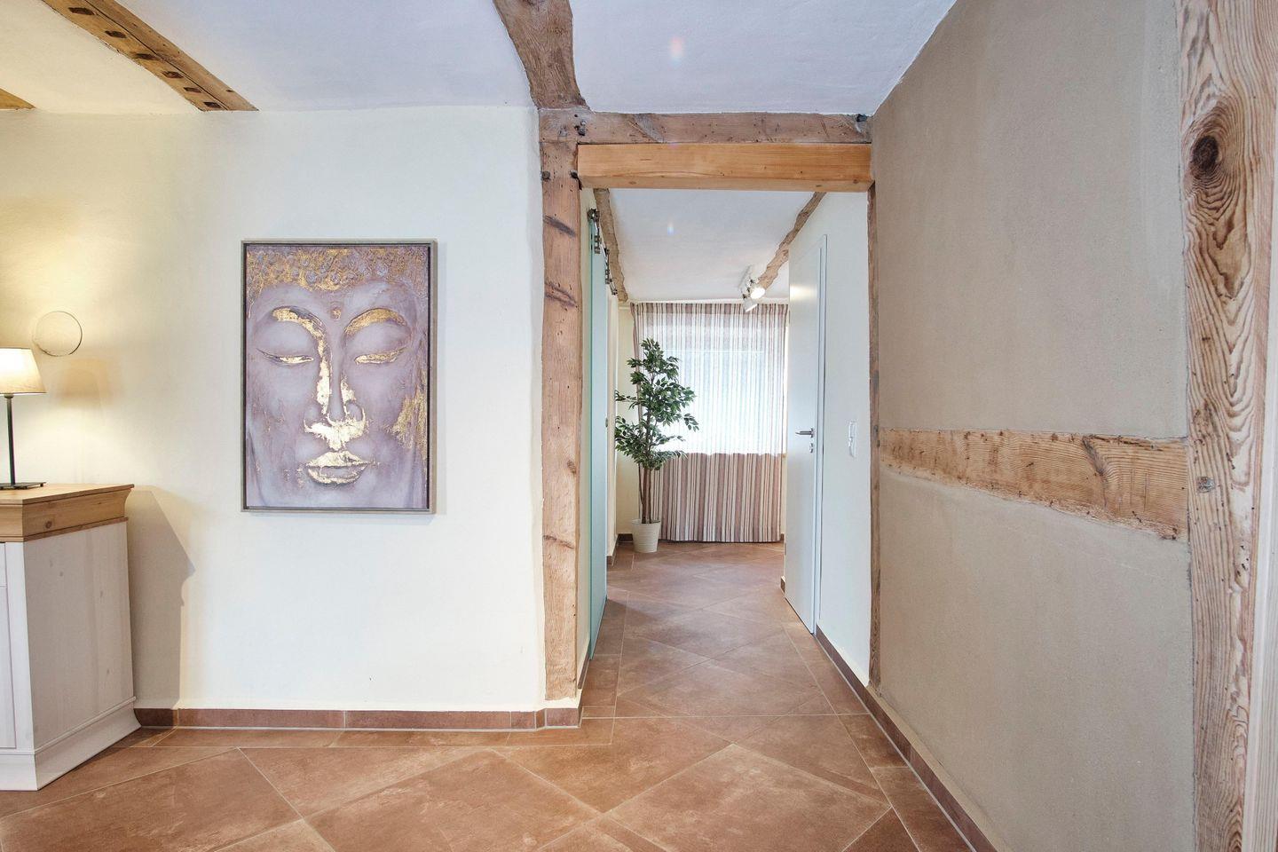 Diese ca. 80 m² große, wunderschön eingerichtete Ferienwohnung "Aufschwung I" für bis zu 5 Personen und ihre Hunde liegt im Erdgeschoss eines Ferienhauses in dem kleinen Ort Fuhlendorf an der südlichen Boddenküste im Landkreis Nordvorpommern.