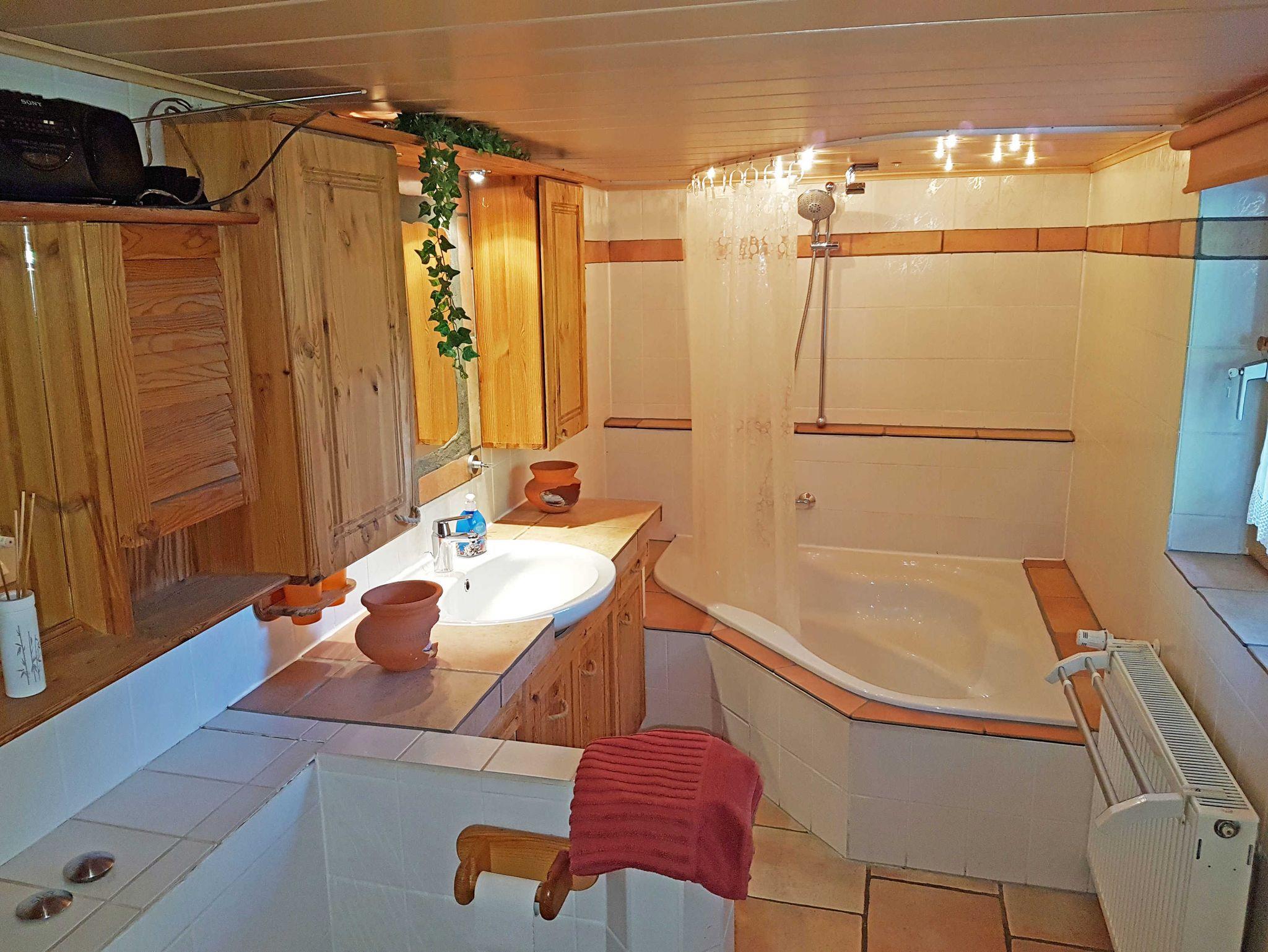 Zwei Schlafzimmer: 1) mit Doppelbett (180x200; getrennte Matratzen) und einer Räuberhöhle (Hochbett auf einer zweiten Ebene ca. 5m² mit Liegefläche 140x190, ein Traum für Kinder)