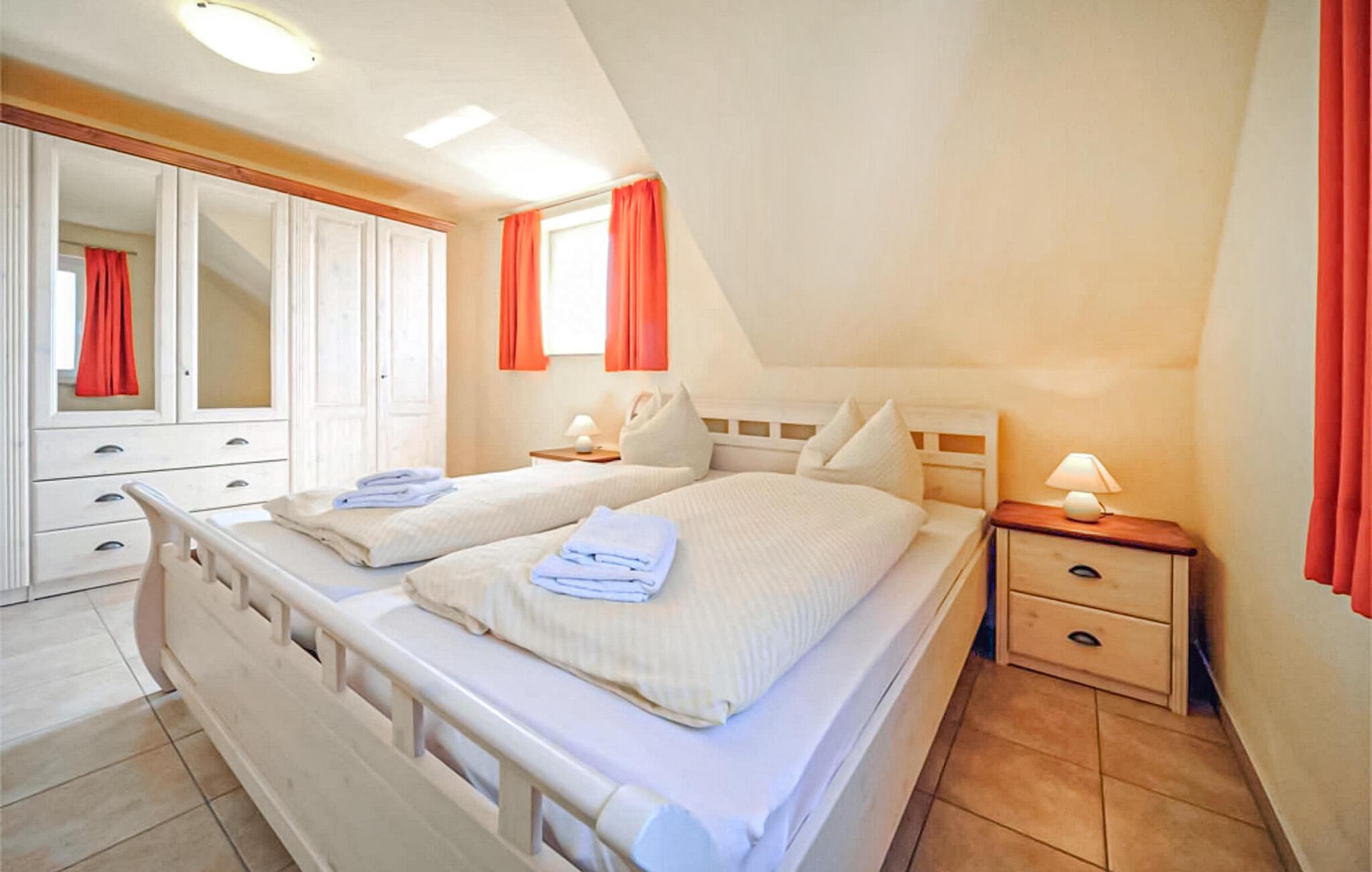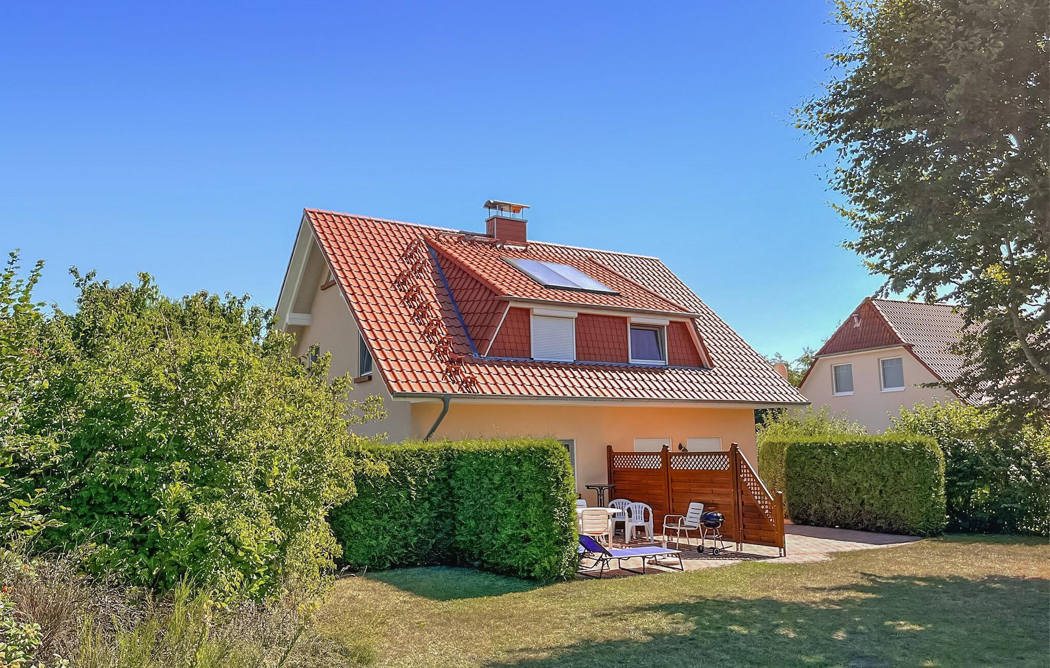 Das exklusive Doppel-Ferienhaus mit zwei separaten Wohneinheiten steht in einer Feriensiedlung direkt am Bodstedter Bodden (Schilfgürtel). Bis zum Badestrand ca. 500 m, bis zum Yachthafen ca. 150 m. Die Ferienwohnung verfügen über drei Wohnebnen. Im Parterre befinden sich das kombinierte Wohn-/Esszimmer (Polstersitzecke, Flachbild-TV, Essplatz, Küchenzeile mit E-Herd und Geschirrspüler, Kaminofen), ein Gäste-WC und ein Hauswirtschaftsraum. Das Obergeschoss besteht aus einem Schlafraum (Doppelbett, gr. Kleiderschrank), einem Kinderschlafraum (Etagenbetten) und einem Bad mit Wanne, DU, WC und 2 Waschtischen. Im Dachgeschoss befindet sich ein weiterer Schlafraum mit 2 Einzelbetten. Die Wohnungen verfügen über Fußbodenheizung, Waschmaschine, Insektenschutz vor den Fenstern, Sonnenliegen, Terrasse. Kinderbett und Hochstuhl zum Zustellen. Ein abschließbarer Fahrradschuppen, Grill und PKW-Stellplatz sind ebenfalls vorhanden. Im Gesamtpreis enthalten sind WLAN, Wasser- und Energieverbrauch, Endreinigung. Bettwäsche und Handtücher können mitgebracht oder bei Bedarf gemietet werden. Vor Ort zu zahlen: Kurabgabe.