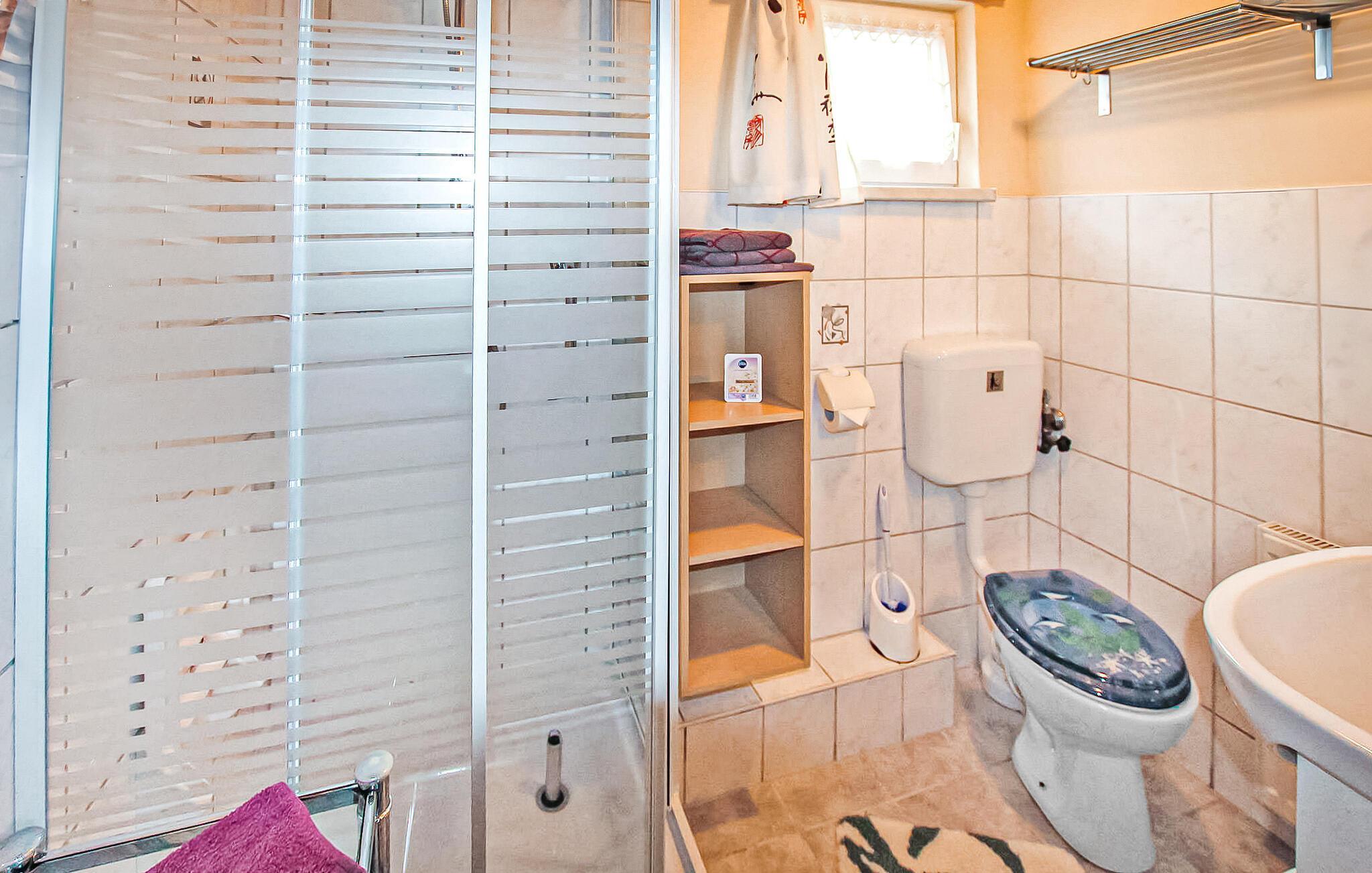 Badezimmer (nr. 1) - WC. Warmes und kaltes Wasser. Dusche