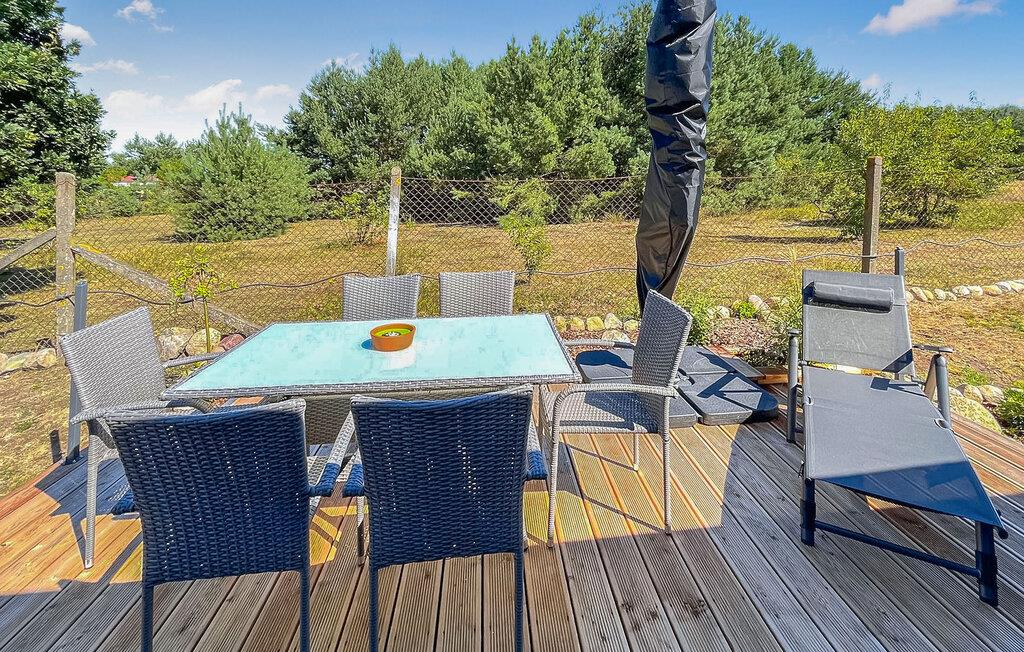 Das im Jahre 2022 komplett sanierte und neu ausgestatte Ferienhaus befindet sich auf einem ca. 500 qm großen, separaten und vollständig umzäunten Erholungsgrundstück in ruhiger Orts- und Waldrandlage. Der Bodstedter Bodden mit Badestrand und Hafen ist etwa 500 m entfernt. Bis zum Ostseestrand in Zingst sind es ca. 10 km.Das Ferienhaus mit offenem Grundriss ist hochwertig ausgestattet mit einem Wohnbereich (Polstermöbel, internetfähiger Flachbild-TV, Radio), Küchenzeile (E-Herd mit Backofen, Kühlschrank mit Tiefkühlfach, Spülmaschine, Mikrowelle, div. Küchengeräte, Esstisch), 1. Schlafraum (1 x Doppelbett, TV), 2. Schlafraum (2 Einzelbetten) sowie einem Bad mit DU/WC, Fön, Waschmaschine und Trockner. Die Unterkunft ist mit einer E-Heizung beheizbar.Zur Verfügung stehen eine Terrasse mit Sitzmöbel, 2 Sonnenliegen, Grill, Fahrradabstellmöglichkeit (Geräteschuppen) und PKW-Stellplatz zur kostenlosen Nutzung. Für Kleinkinder stehen ein Hochstuhl und ein Kinderreisebett bereit. W-LAN ist ebenfalls vorhanden.
