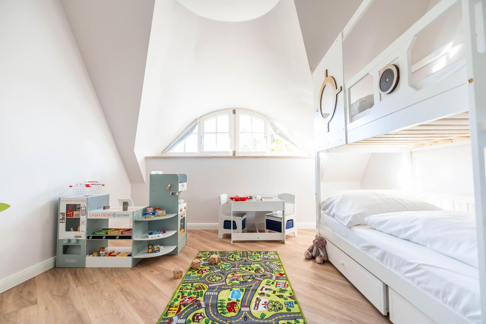 Parterre: (offene Küche(Wasserkocher, Toaster, Kochherd(4 Kochplatten, Ceranfeld), Dunstabzugshaube, Kaffeemaschine, Backofen, Mikrowelle, Spülmaschine, Kühlschrank(+ Gefrierfach)), Wohn/Esszimmer(TV(Satellit), Esstisch, Kaminofen, DVD-Spieler, Radio, CD-Spieler, Stereoanlage), Schlafzimmer(Doppelbett), Badezimmer(Dusche, Waschbecken, Toilette, Föhn), Abstellraum) In der 1. Etage: (Schlafzimmer(Doppelbett), Schlafzimmer(Doppelbett, TV(Satellit)), Badezimmer(Dusche, Sauna, Waschbecken), Toilette) Carport, Waschmaschine, Heizung(Fußbodenheizung), Terrasse, Garten, Fahrradabstellraum, Gartenmöbel, Parkplatz, Parkplatz, Sonnenschirm, Hochstuhl, Bügelbrett, Bügeleisen, Ladestation für Elektroautos, Babybett (kostenlos), Handtücher/Bettwäsche (inklusive)