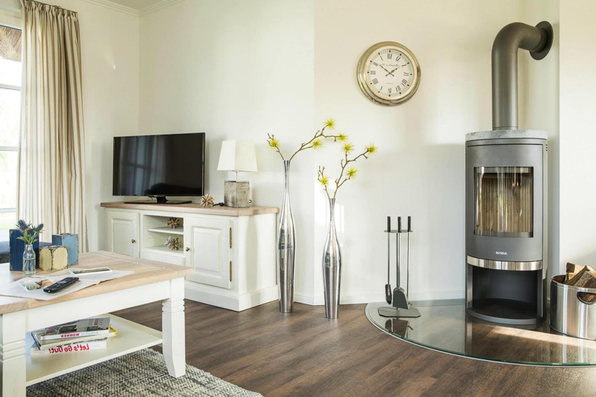 Luxuriöses Reetdachhaus am Bodden mit Sauna, Kamin und naturnaher Lage für erholsamen Urlaub nahe Wasser und Strand.