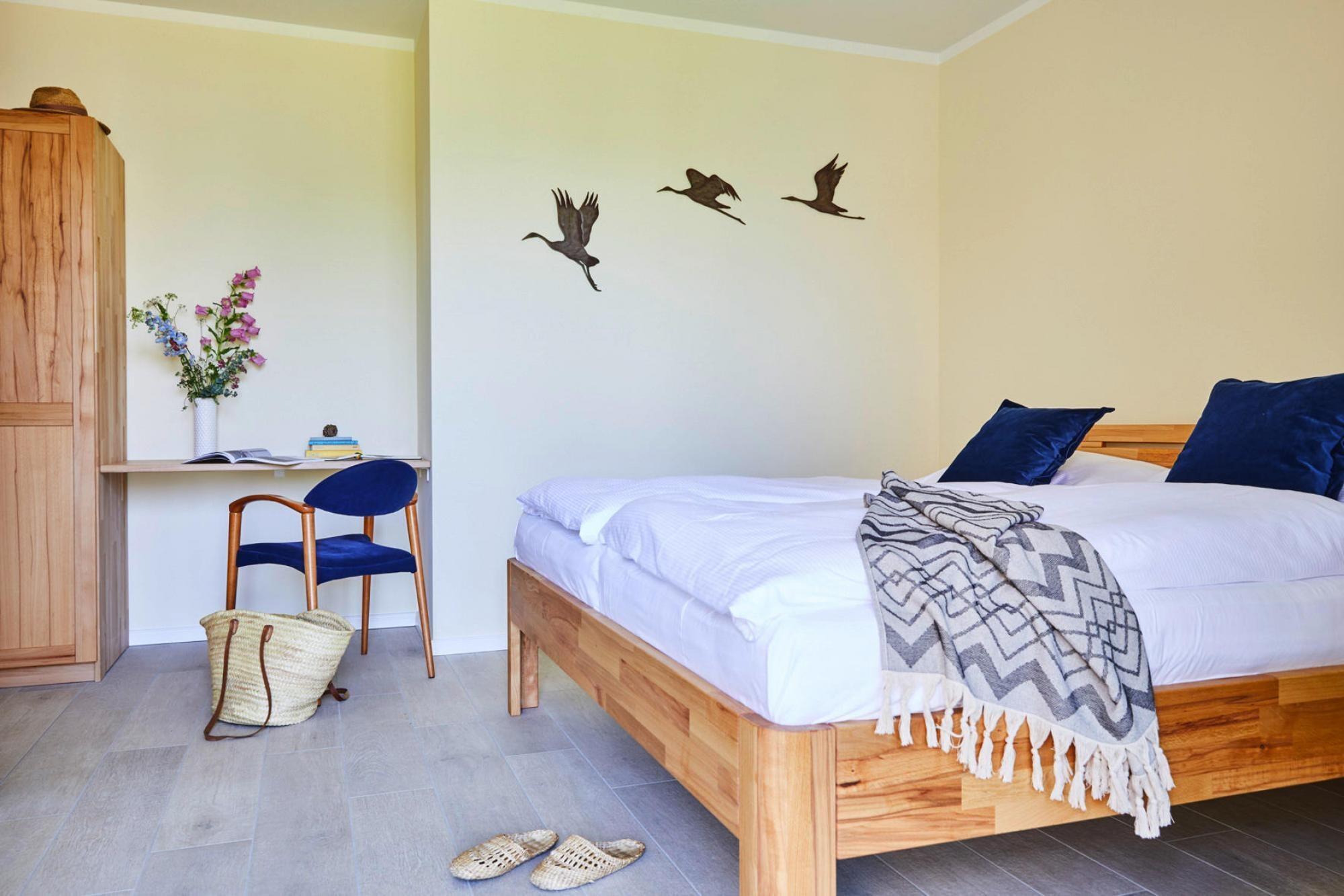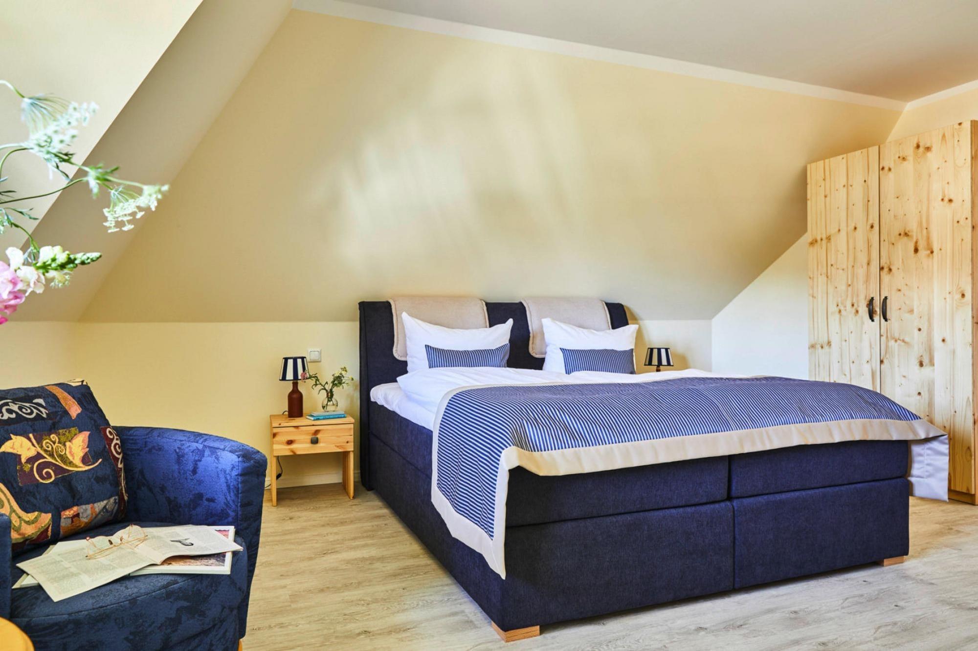 Ankommen und Wohlfühlen: Neues Reetdachhaus in idyllischer Lage am Bodden, nur 170 Meter vom Wasser entfernt. Von Sauna und Kamin über WLAN und SAT-TV mit Sky bis hin zu komfortablen Boxspringbetten können Sie hier in luxuriösem Ambiente jede Sekunde Ihres Urlaubs genießen. Entweder relaxen Sie ganz in Ruhe an der naturbelassenen Badestelle am Boddengewässer oder Sie machen einen Ausflug zum lebhaften Ostseestrand in Zingst, der 17 Kilometer entfernt ist. Rund um den Bodden warten idyllische Dörfer und eine einmalige Landschaft darauf, von Ihnen entdeckt zu werden. Die Gemeinden Fuhlendorf und Bodstedt liegen sehr idyllisch an der südlichen Boddenküste. Von Bodstedt aus fahren in der wärmeren Jahreszeit täglich Fahrgastschiffe zur Halbinsel Darß nach Born und weiter durch die Neuendorfer Bülten nach Ahrenshoop-Althagen. Highlights inklusive: Alle verbrauchsabhängigen Energiekosten, Bettwäsche und Handtücher Sauna WLAN Kaminholz (Erstausstattung) Aktivitäten in der Nähe: Die kleine Nachbargemeinde Bodstedt ist mit seinem Traditionshafen bekannt für die dort beheimateten Zeesenboote. Einzelne Eigner von Zeesenbooten bieten Mitfahrmöglichkeiten an und eine solche Gelegenheit sollten Sie sich nicht entgehen lassen! Am ersten Wochenende im September startet seit 1965 jedes Jahr die große Bodstedter Zeesenbootregatta.