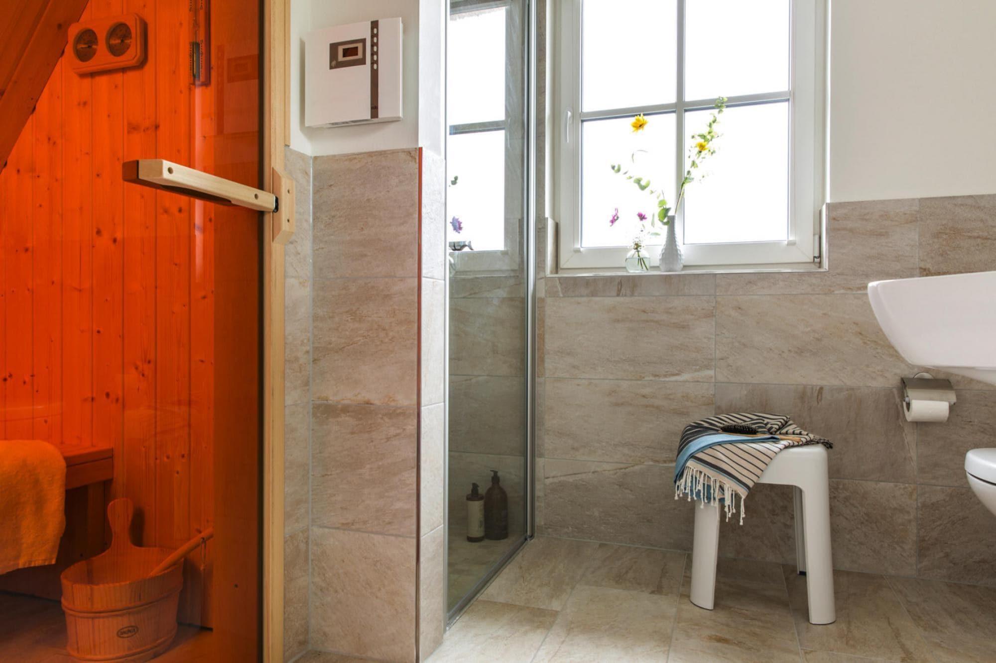 Parterre: (offene Küche(Kochplatte(4 Kochplatten, Ceranfeld), Wasserkocher, Toaster, Kaffeemaschine, Backofen, Mikrowelle, Spülmaschine, Kühl-/Gefrierkombination), Wohn/Esszimmer(TV(Satellit), Kaminofen, CD-Spieler, Stereoanlage), guest toilet, Abstellraum) In der 1. Etage: (Schlafzimmer(Doppelbett(200 x 180 cm), TV(Satellit)), Schlafzimmer(Doppelbett(200 x 180 cm), TV(Satellit)), Schlafzimmer(Einzelbett), Badezimmer(Dusche, Sauna, Toilette)) Carport, Grill, Trockner, Waschmaschine, Heizung, Terrasse, Garten, Gartenmöbel, Parkplatz, Sonnenschirm, Hochstuhl, Babybett (kostenlos), Handtücher/Bettwäsche (inklusive)