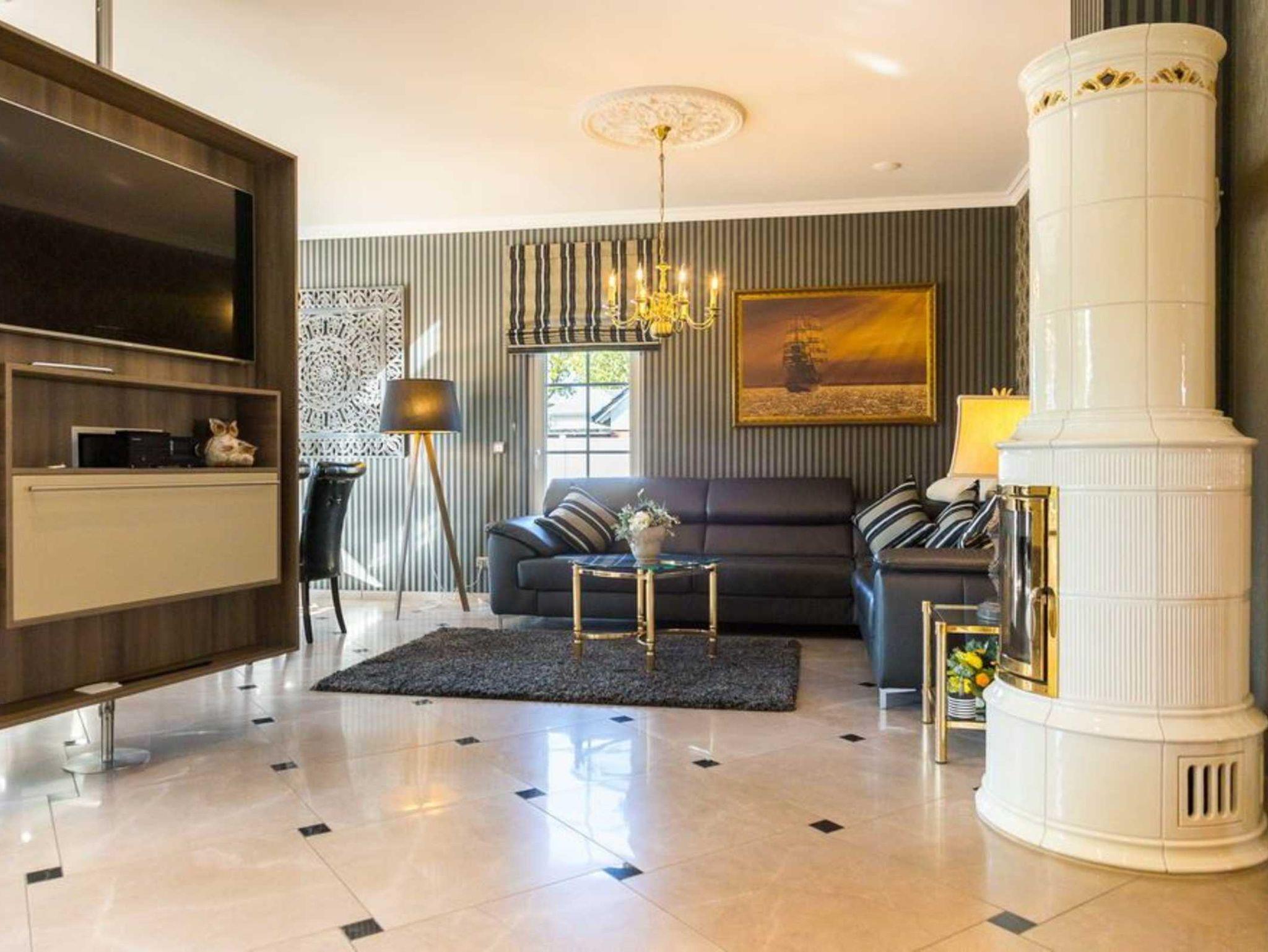 Wir bieten Ihnen (ausreichend für ca. 5 Personen) einen Komfort, der zum Wohlfühlen und Relaxen einlädt. Neben dem stilvoll, klassischen Charme verströmden Wohnraum (an kühleren Abenden durch die Wärme eines Kamins vollendet) mit offenem Küchenbereich, bieten wir Ihnen zwei Schlafzimmer mit der Option zur Aufbettung. An die kleinen Urlauber ist mit Kinderstuhl und Reisebett gedacht. Ein großzügig gestaltetes, lichtdurchflutetes Badezimmer mit - auch hier hochwertiger Ausstattung - Bad und Duschkabine ästhetisch integriert - sowie ein Gäste-WC in edlem Design erwarten Sie. Die überdachte Terrasse lässt den Betrachter durch einen romantischen Sonnenuntergang unvergessliche Momente erleben und die reizvolle Idylle unserer Region erahnen.