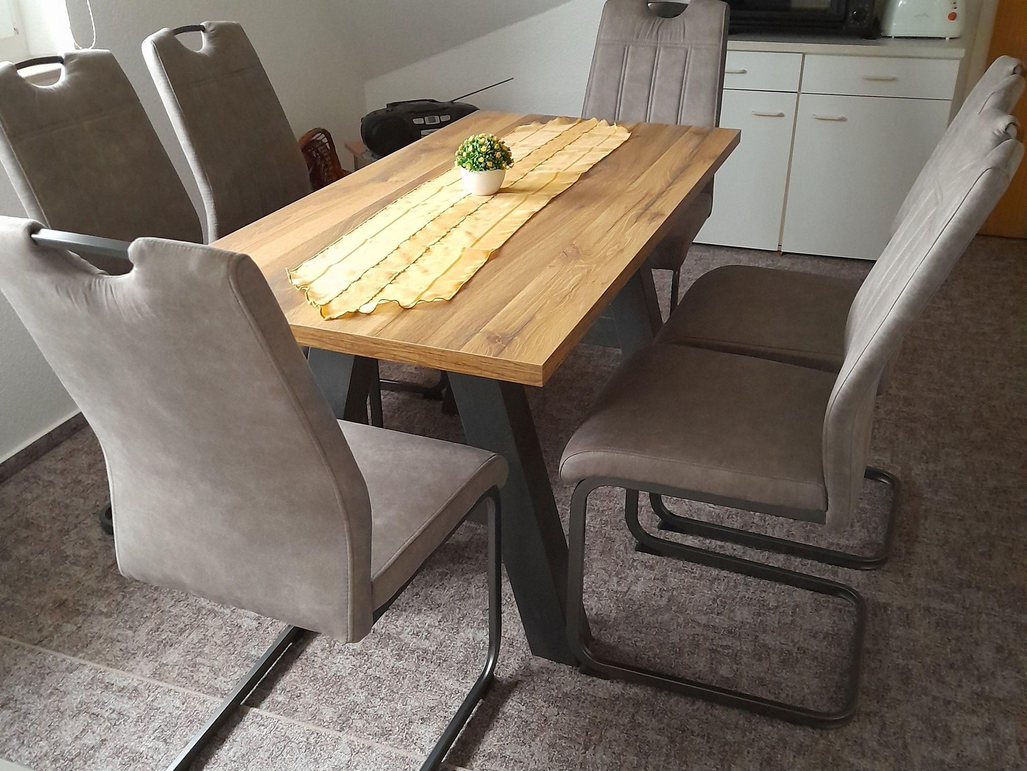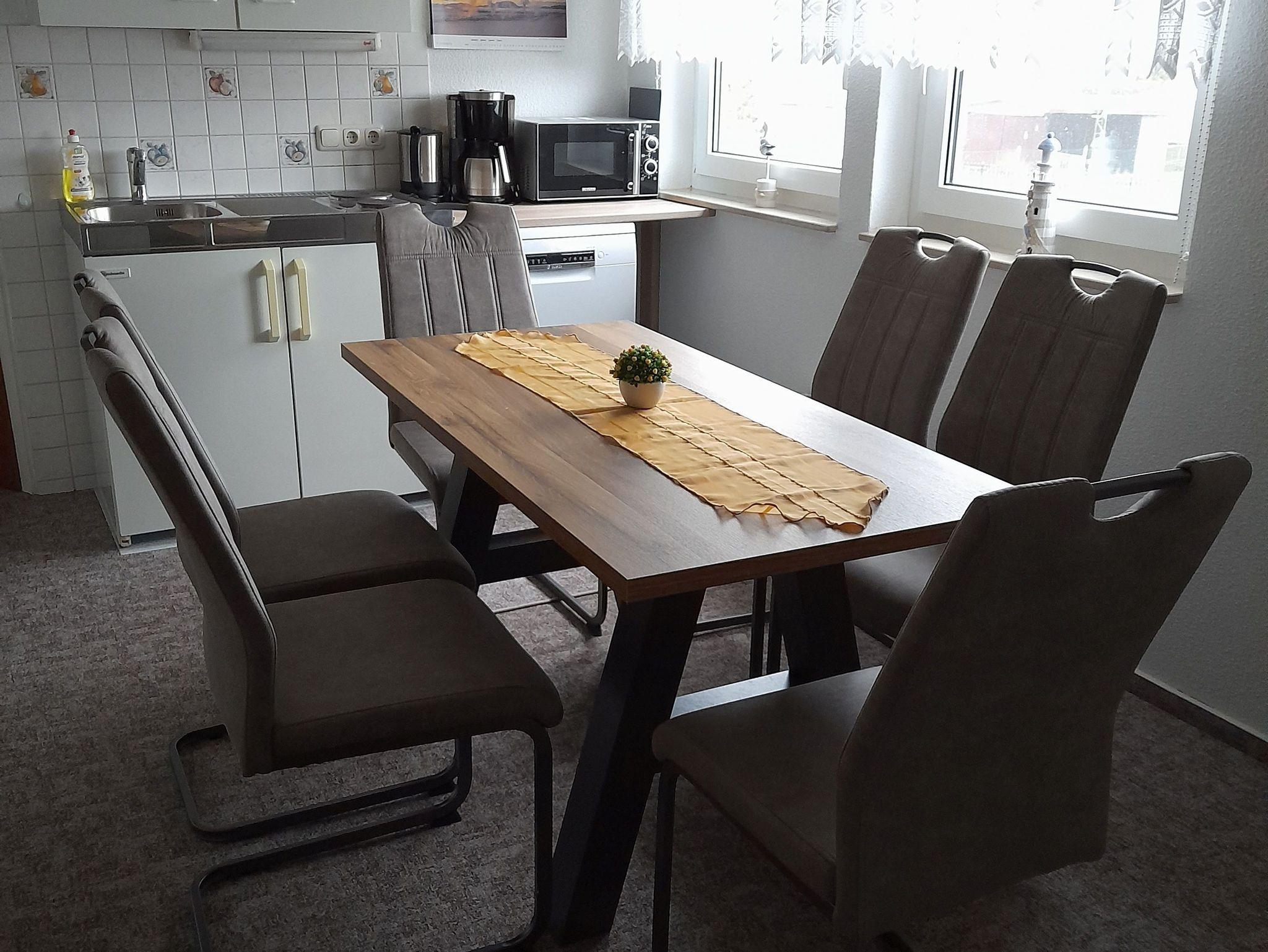 Diese Ferienwohnung im 1. OG bietet Ihnen viel Platz und Komfort, da Ihnen die gesamte Etage exklusiv zur Verfügung steht. Die Wohndiele mit integrierter, voll ausgestatteter Küchenzeile lädt dazu ein, den Tag bei einem gemeinsamen Essen oder einem Glas Wein gemütlich ausklingen zu lassen.