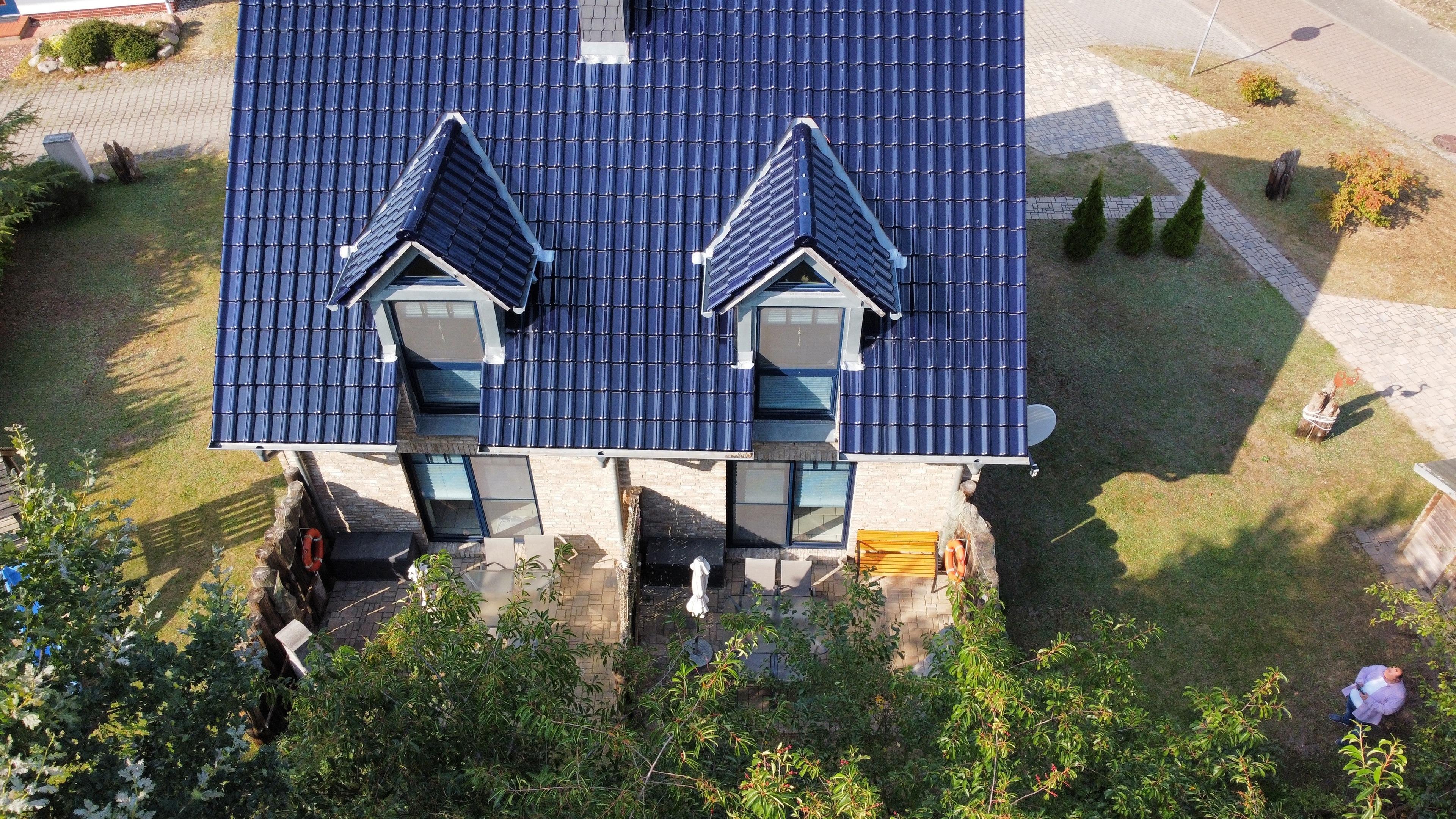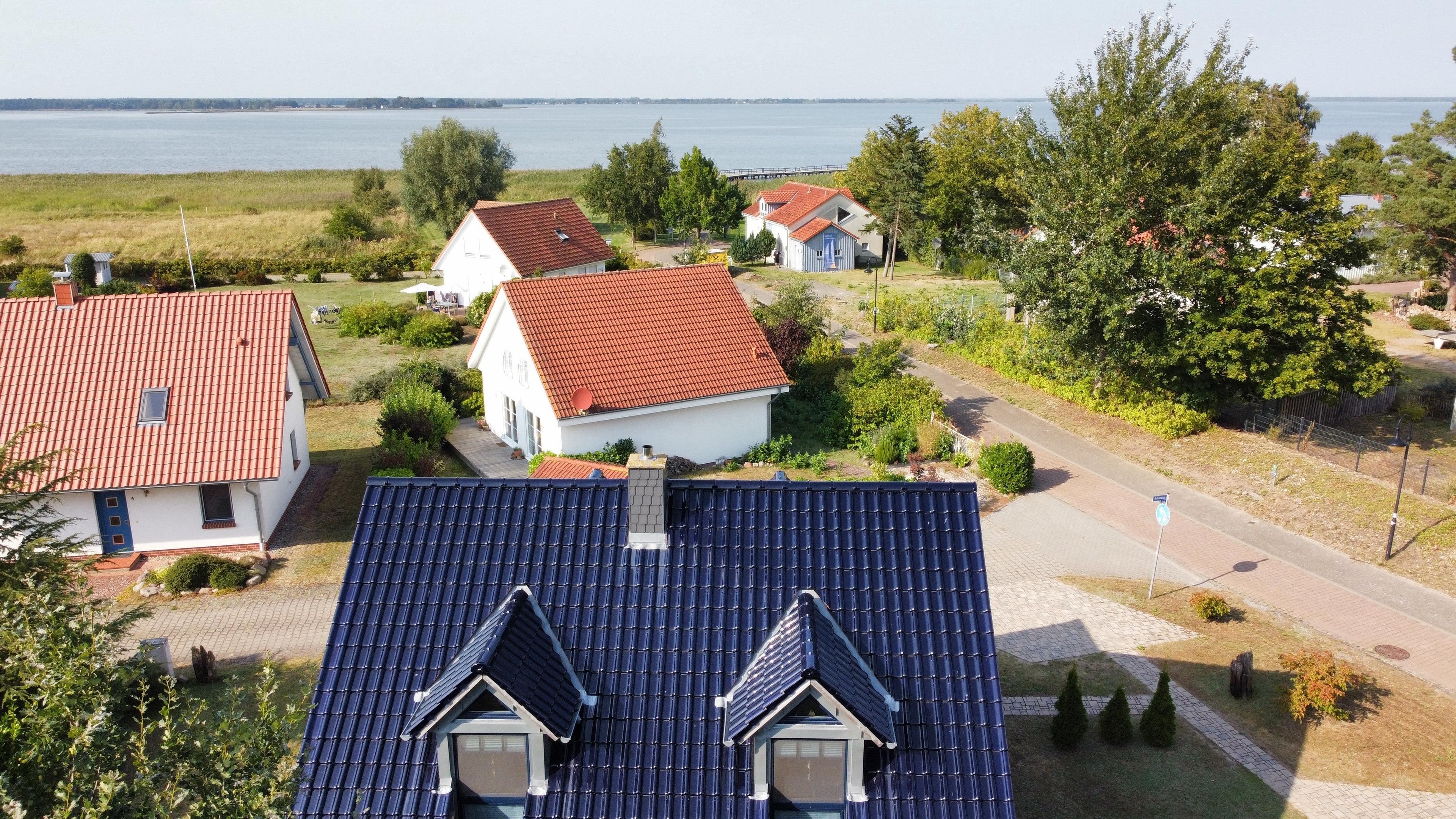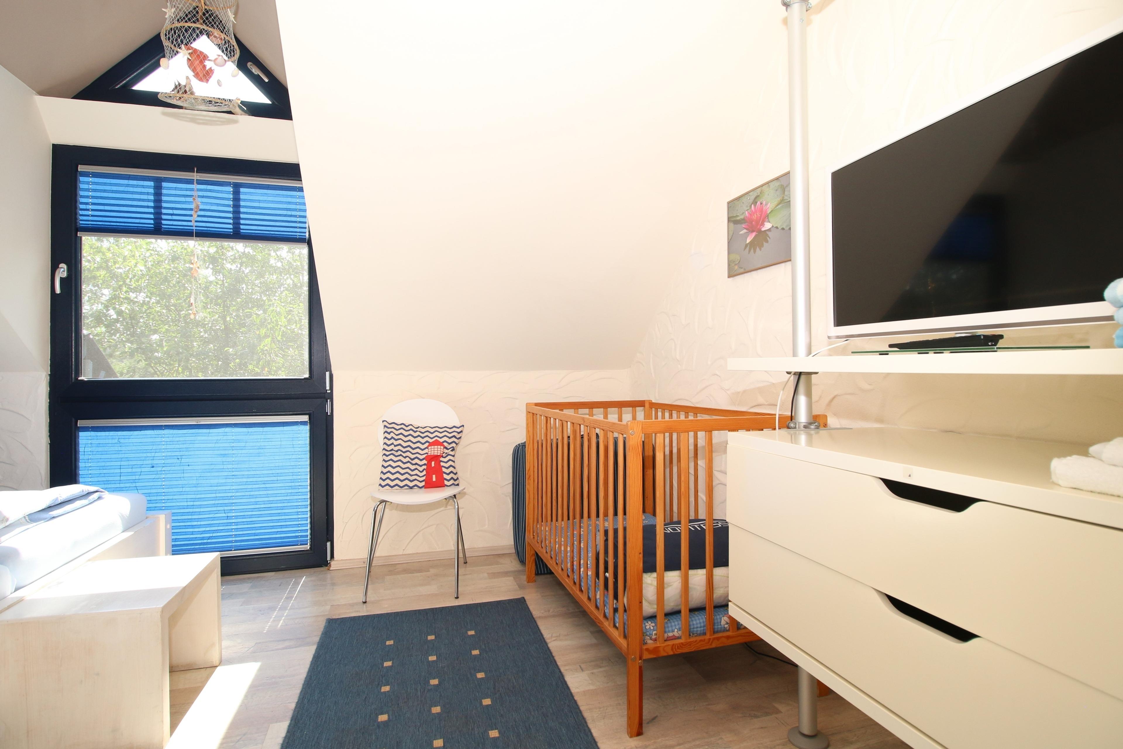 Die Schlafzimmer sind mit jeweils 180x200 Betten ausgestattet, auf Wunsch stellen wir kostenfrei Kinderbetten zur Verfügung. Aus beiden Schlafzimmern sieht man den Bodden.