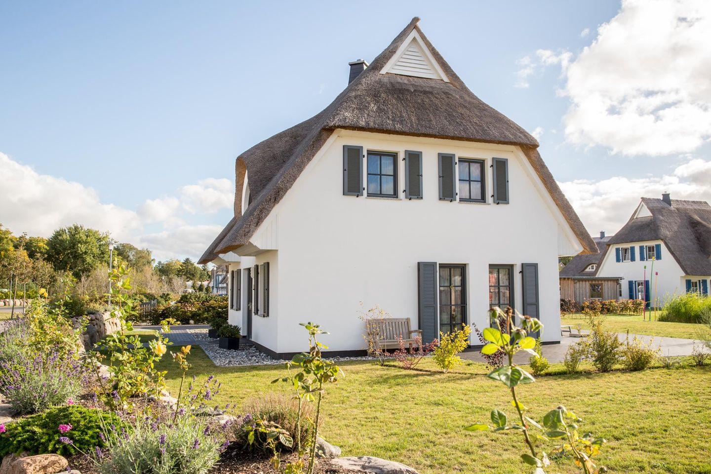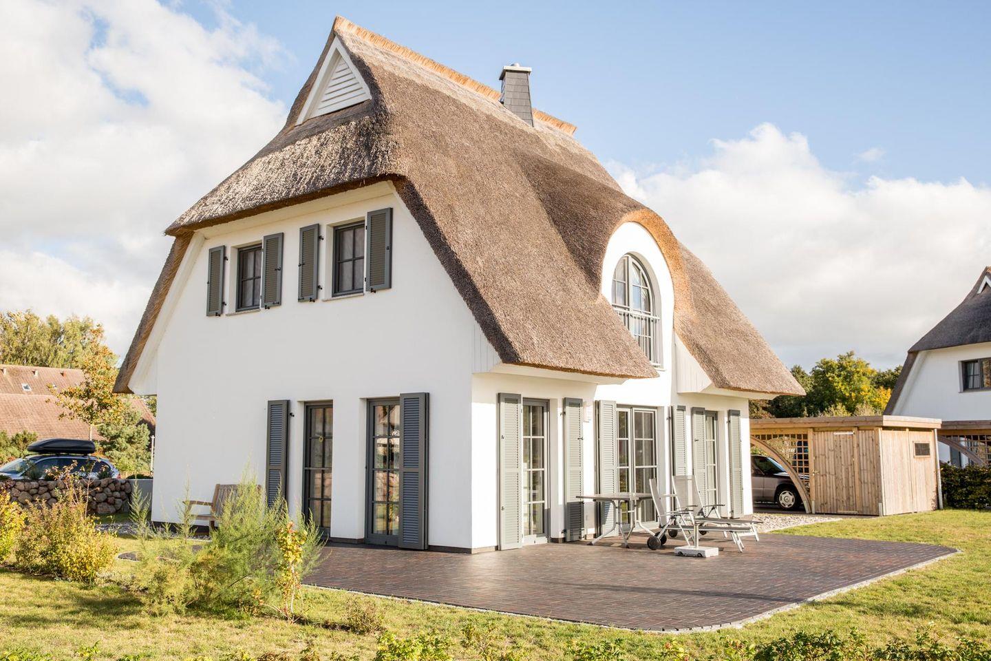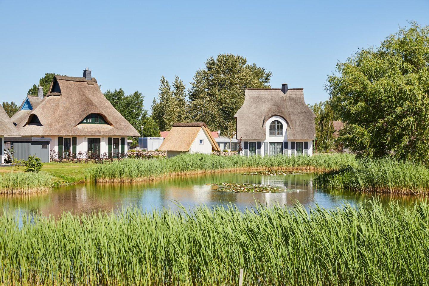Das wunderschöne Ferienhaus mit traditionellem Reetdach, Fensterläden, ortstypischer Feldsteineinfriedung und 677 m2 großem, eingezäuntem Grundstück am Teich liegt in einer neuen Ferienhausanlage. Es bietet großzügig Platz für fünf Feriengäste (zwei Schlafzimmer mit Doppelbett, eins mit Einzelbett) und verfügt über ein Duschbad mit WC und Sauna im OG sowie ein Gäste-WC im EG.