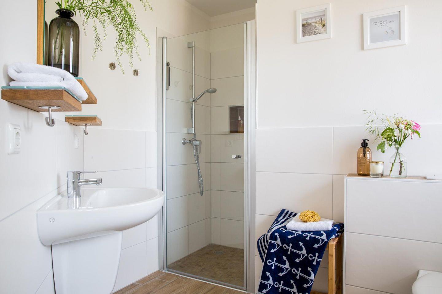 Das wunderschöne Ferienhaus mit traditionellem Reetdach, Fensterläden, ortstypischer Feldsteineinfriedung und 895 m2 großem Grundstück liegt in einer neuen Ferienhausanlage. Es bietet großzügig Platz für fünf Feriengäste (zwei Schlafzimmer mit Doppelbett, eins mit Einzelbett) und verfügt über ein Duschbad mit WC und Sauna im OG sowie ein Duschbad mit WC im EG.