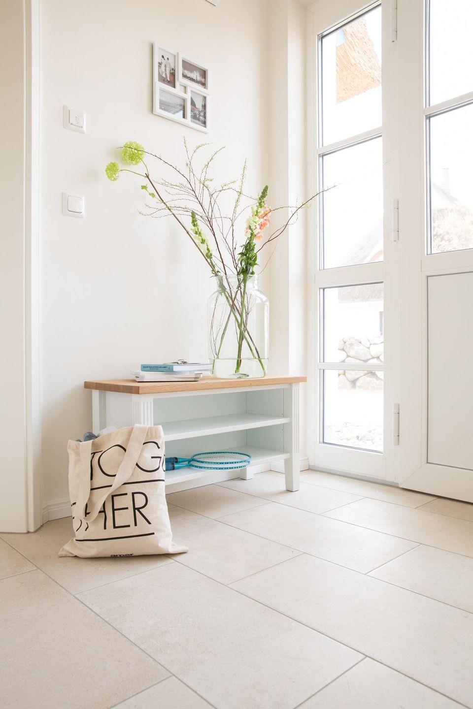 Das wunderschöne Ferienhaus mit traditionellem Reetdach, Fensterläden, ortstypischer Feldsteineinfriedung und 653 m2 großem Grundstück liegt in einer neuen Ferienhausanlage. Es bietet großzügig Platz für fünf Feriengäste (zwei Schlafzimmer mit Doppelbett, eins mit Einzelbett) und verfügt über ein Duschbad mit WC und Sauna im OG sowie ein Gäste-WC im EG.