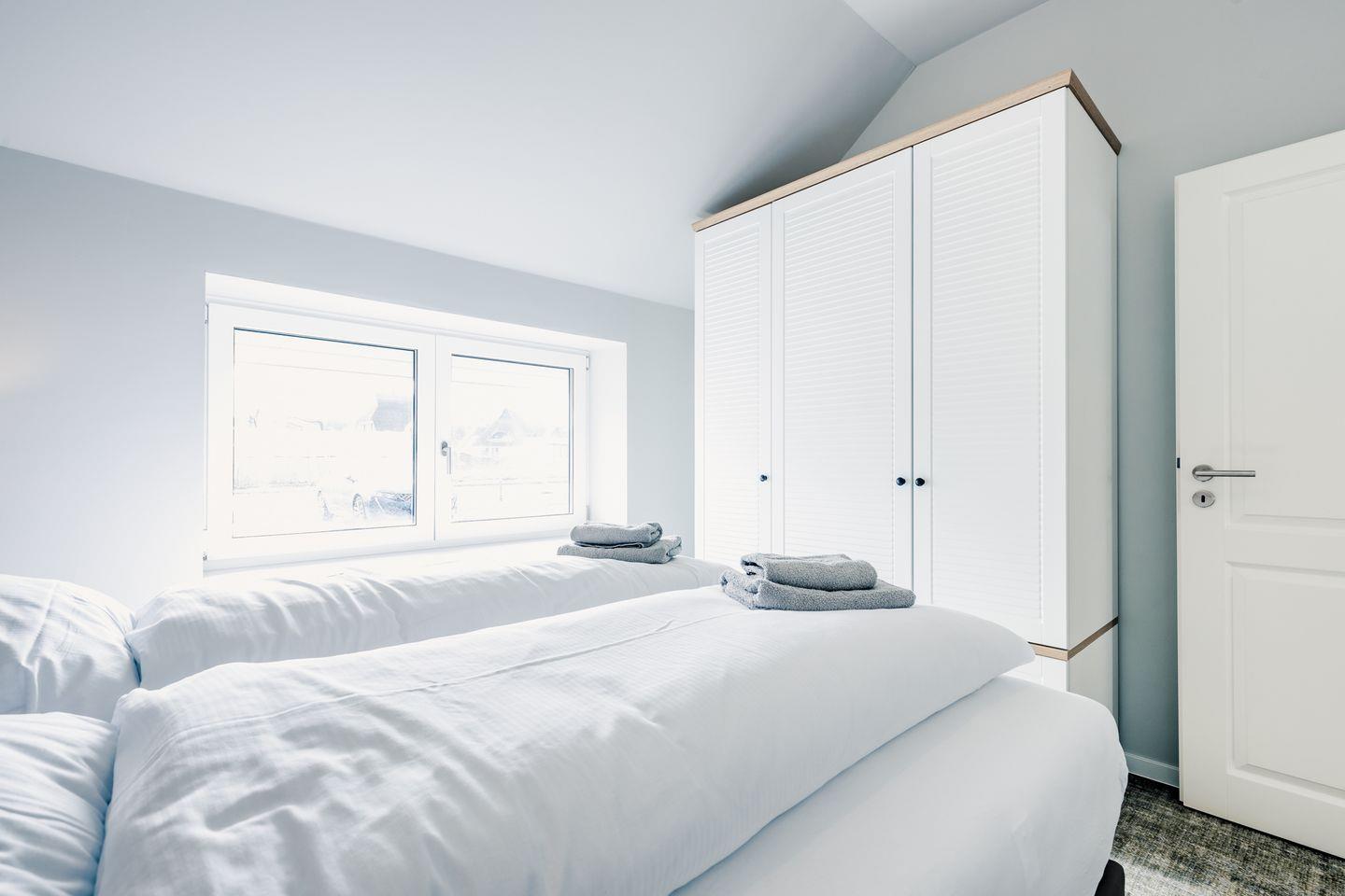 Das Schlafzimmer bietet ein modernes Doppelbett (1,60m x 2,00m), auf welchem Sie Erholung und Entspannung finden. Ein Kinderbett sowie ein Hochstuhl können auf Anfrage hinzugebucht werden.