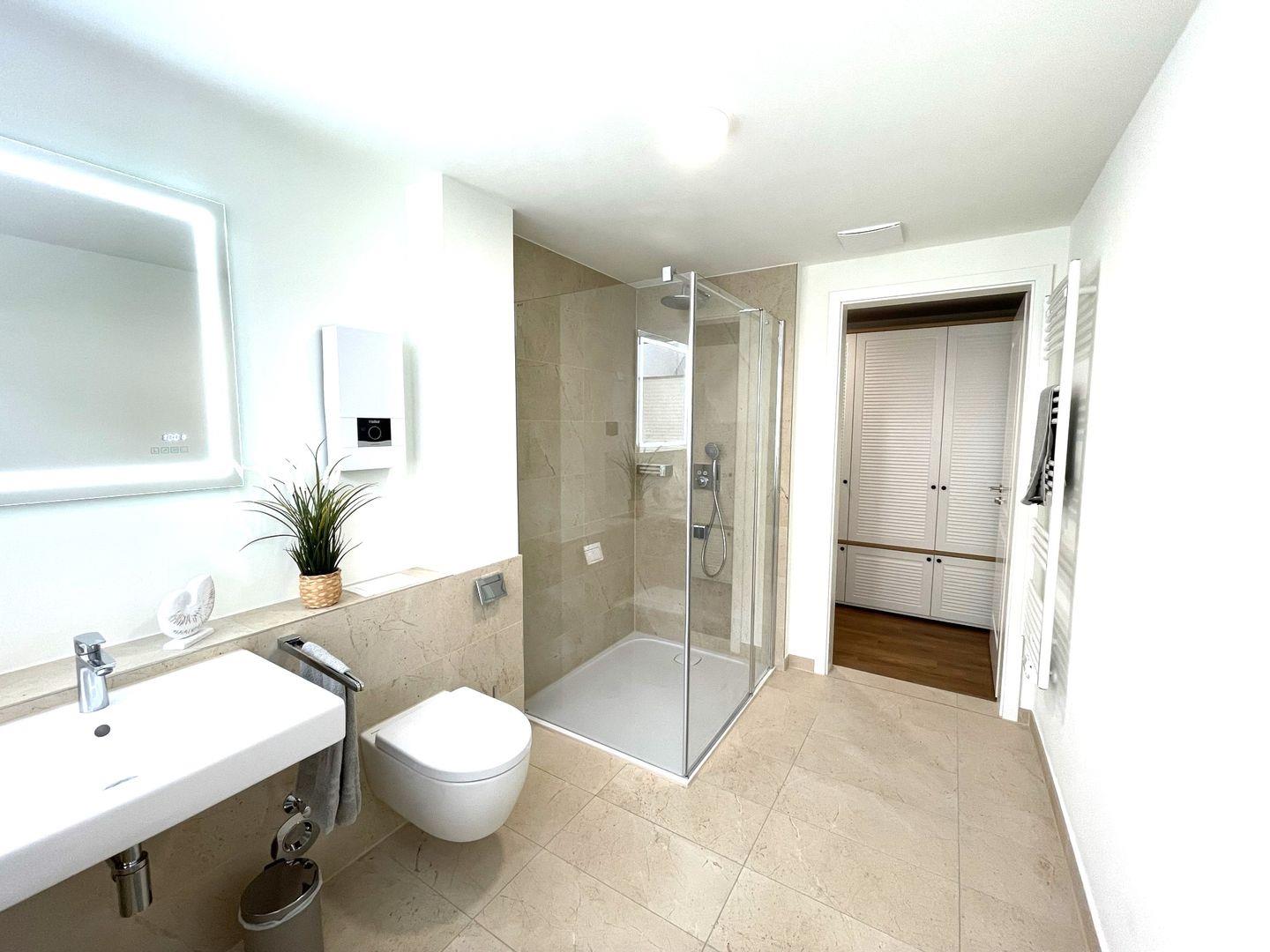 Auf der Terrasse stehen Ihnen moderne Terrassenmöbel zur Verfügung, sodass Sie beispielweise Ihr Frühstück oder Ihr Abendessen ganz privat im Sonnenschein zu sich nehmen können.