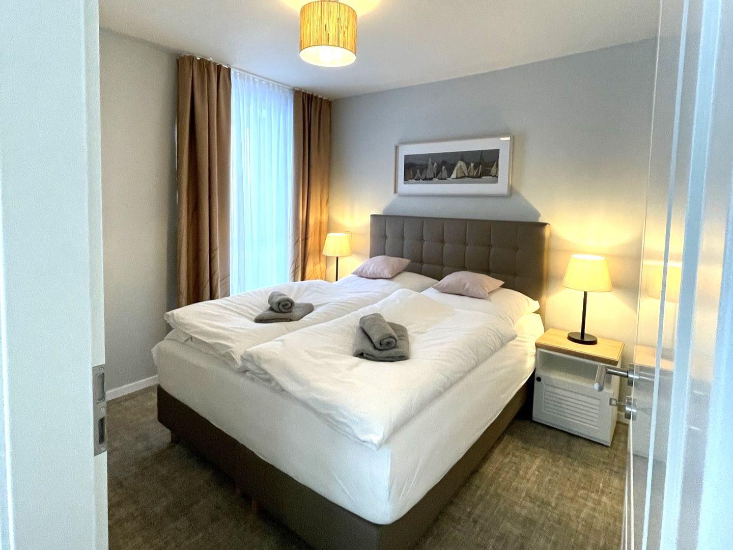 Das Schlafzimmer bietet ein modernes Doppelbett (1,80m x 2,00m), auf welchem Sie süße Träume haben werden. Ein zweiter Fernseher sorgt auch hier für Unterhaltung. Ein Kinderbett sowie ein Hochstuhl können auf Anfrage hinzugebucht werden.