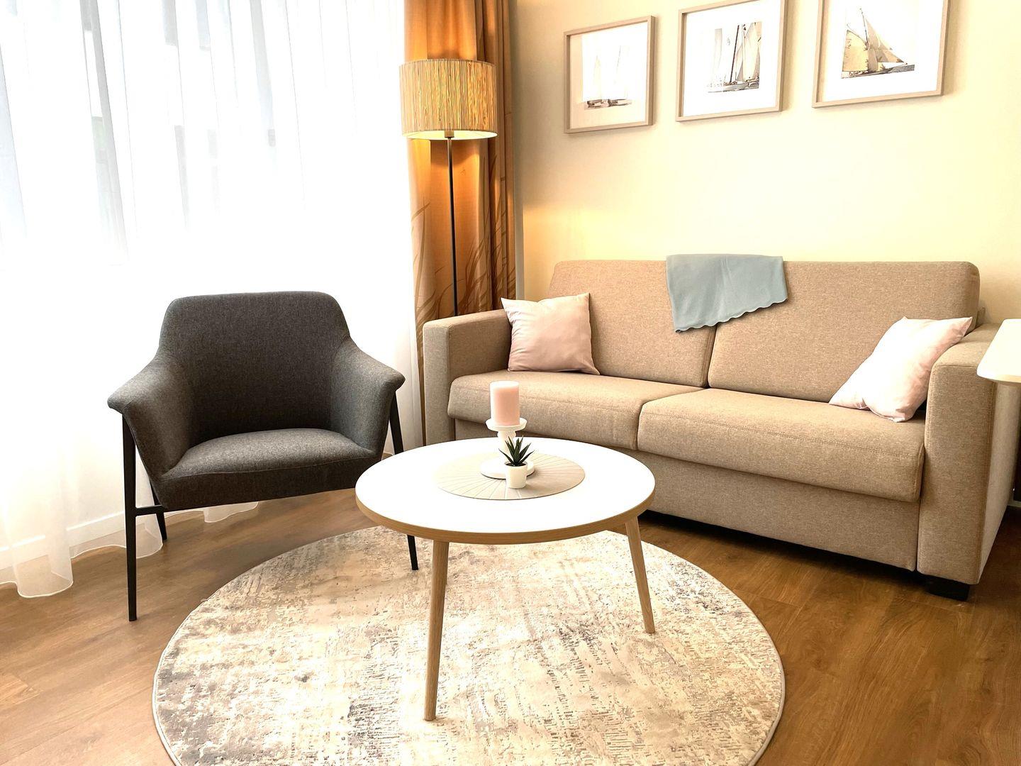Das komfortable Appartement bietet auf 42 qm viel Platz für bis zu 4 Personen. Der gemütliche Wohnbereich besitzt ein bequemes Sofa, welches sich mit wenigen Handgriffen zu einer Doppelschlafcouch (1,40m x 2,00m) umfunktionieren lässt, und sorgt mit einem Flat Screen-TV für reichlich Entertainment.