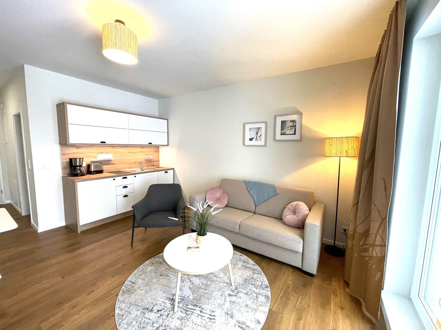 Das komfortable Appartement bietet auf 44 qm viel Platz für bis zu 4 Personen und in Kombination mit dem Appartement 23 auf 8 Personen (Verbindungstür) erweiterbar. Der gemütliche Wohnbereich besitzt ein bequemes Sofa, welches sich mit wenigen Handgriffen zu einer Doppelschlafcouch (1,40m x 2,00m) umfunktionieren lässt, und sorgt mit einem Flat Screen-TV für reichlich Entertainment.