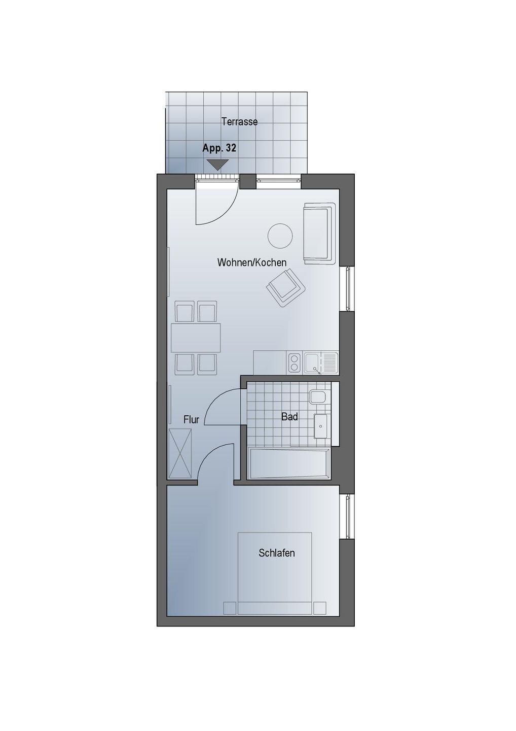 Das komfortable Appartement bietet auf 44 qm viel Platz für bis zu 4 Personen. Der gemütliche Wohnbereich besitzt ein bequemes Sofa, welches sich mit wenigen Handgriffen zu einer Doppelschlafcouch (1,40m x 2,00m) umfunktionieren lässt, und sorgt mit einem Flat Screen-TV für reichlich Entertainment.