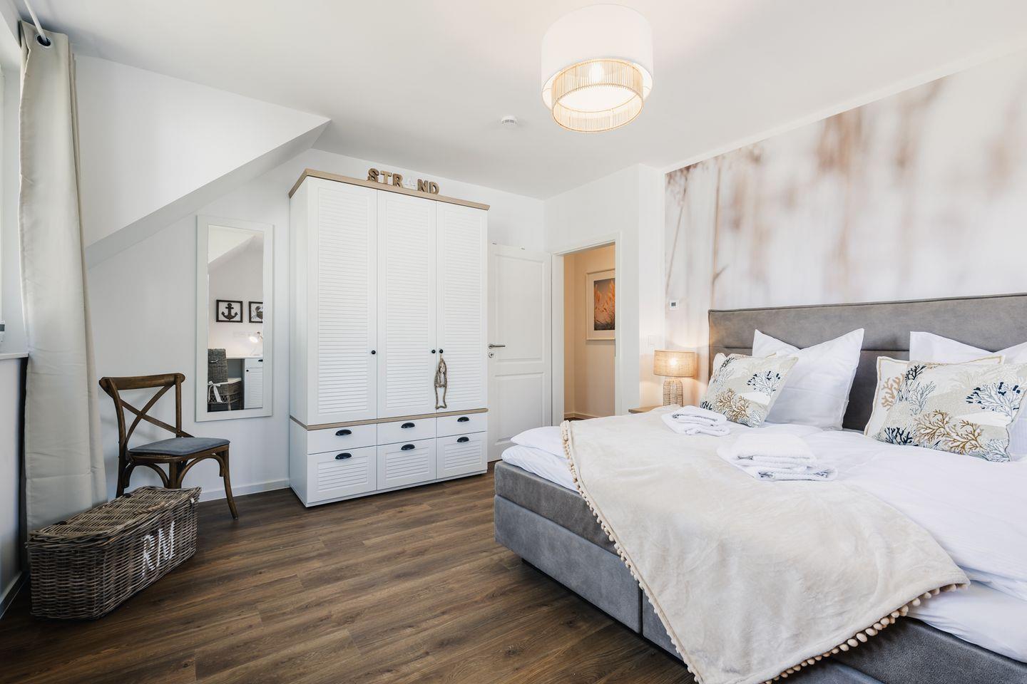 Die beiden Schlafzimmer bieten Ihnen jeweils ein modernes Doppelbett (1,80m x 2,00m), auf welchem Sie Erholung und Entspannung finden. Ein Kinderbett sowie ein Hochstuhl können auf Anfrage hinzugebucht werden.