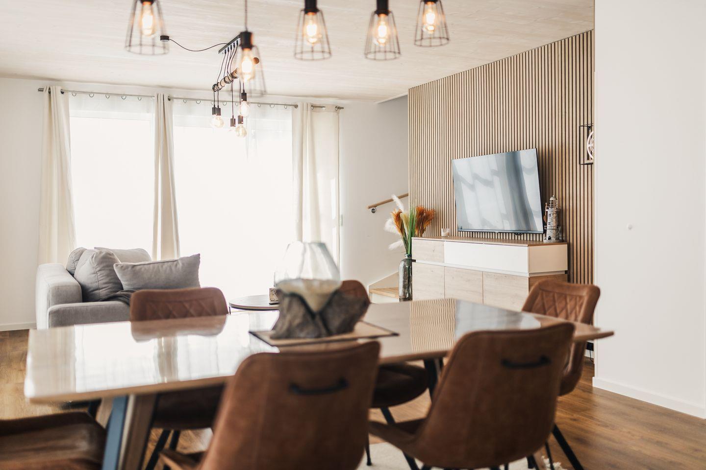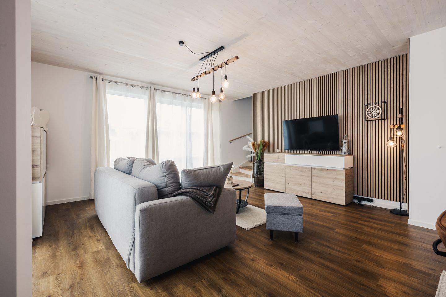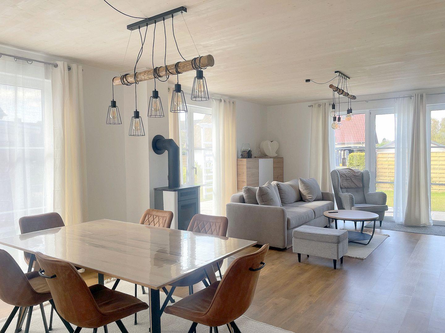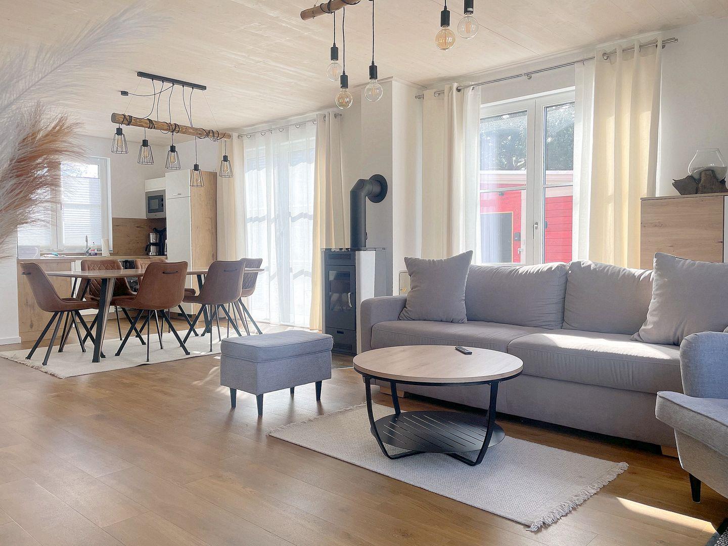 Das gemütliche Ferienhaus bietet auf ca. 100 qm viel Platz für bis zu 6 Personen. Der komfortable Wohnbereich besitzt ein bequemes Schlafsofa mit Kuscheldecke und sorgt mit einem Flat Screen-TV für Entertainment.