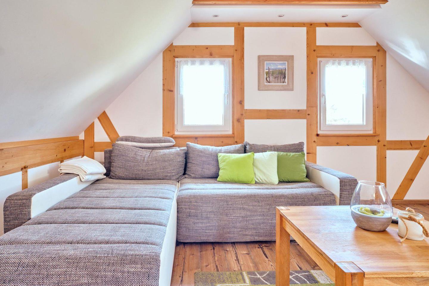 Das stilvoll eingerichtete Domizil für bis zu 6 Personen verfügt auf 2 Ebenen über einen großen Wohnbereich mit Kaminofen, 1 offene Küche, 1 Essbereich, 2 Schlafräume, 2 Bäder, 1 Hauswirtschaftsraum und ein ca. 1.000 m² großes, komplett eingezäuntes Grundstück.