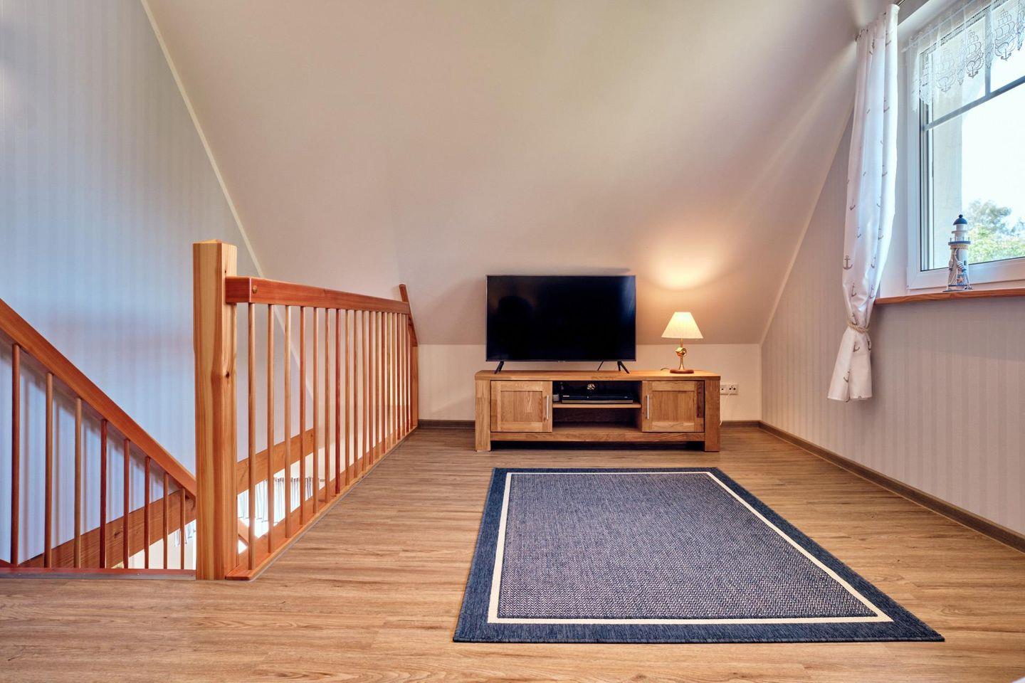 Das moderne Domizil für bis zu 4 Personen verfügt auf 2 Ebenen über einen großen Wohnbereich mit Kaminofen, 1 offene Küche mit Essbereich, 2 Schlafräume, 1 Galerie, 2 Bäder, 1 Hauswirtschaftsraum und ein ca. 400 m² großes, komplett eingezäuntes Grundstück.