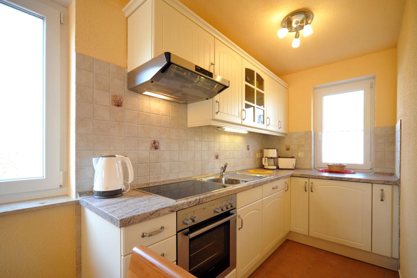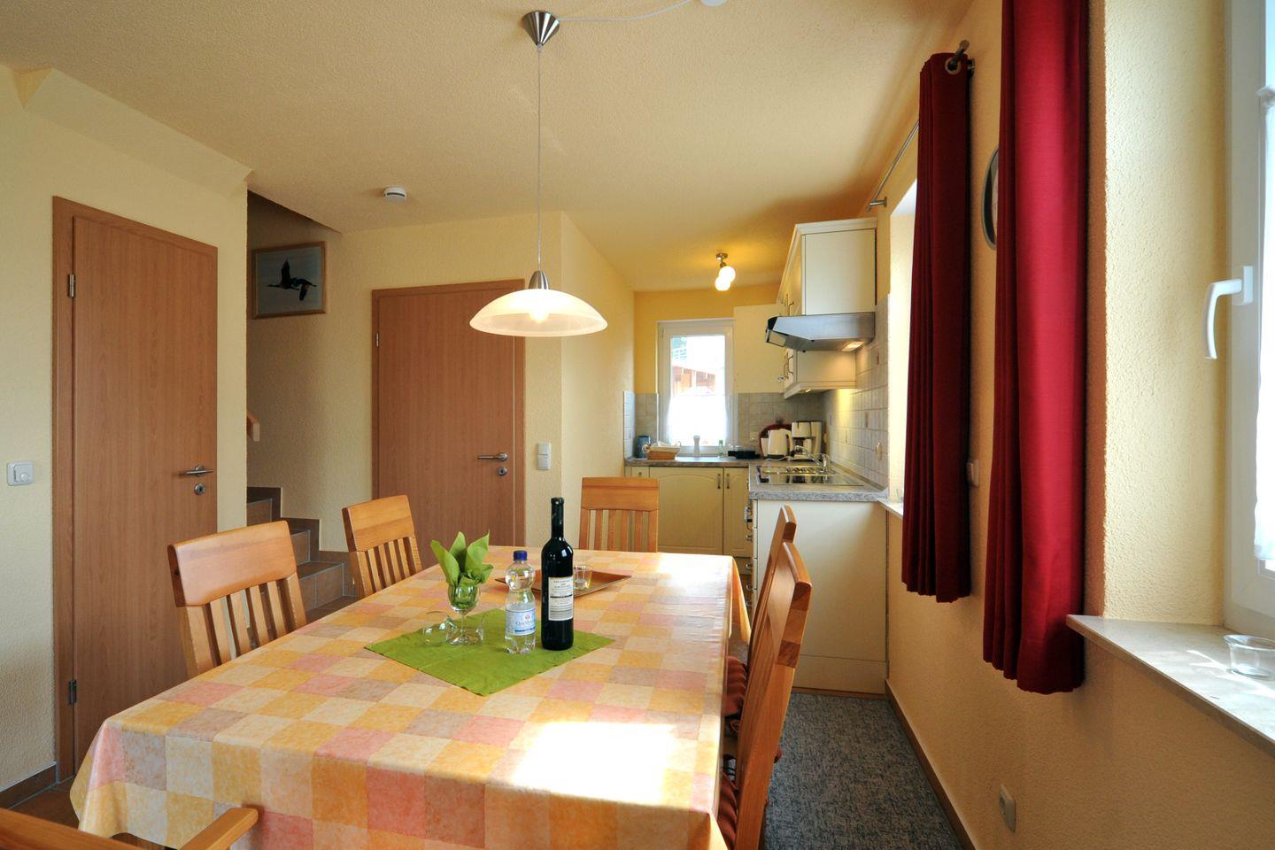 Die Haushälfte 8A erstreckt sich über drei Etagen und bietet auf großzügigen ca. 100 m² ausreichend Raum für bis zu 6 Personen. Das Erdgeschoss empfängt Sie mit einem lichtdurchfluteten Wohn- und Essbereich, einer bequemen Polstersitzecke, Flachbild-TV und einem gemütlichen Kaminofen – ideal für entspannte Abende. Die voll ausgestattete Küchenzeile mit E-Herd, Geschirrspüler und allen wichtigen Utensilien lässt keine Wünsche offen. Ein separates Gäste-WC sowie ein Hauswirtschaftsraum mit Waschmaschine ergänzen die Ausstattung im Erdgeschoss.