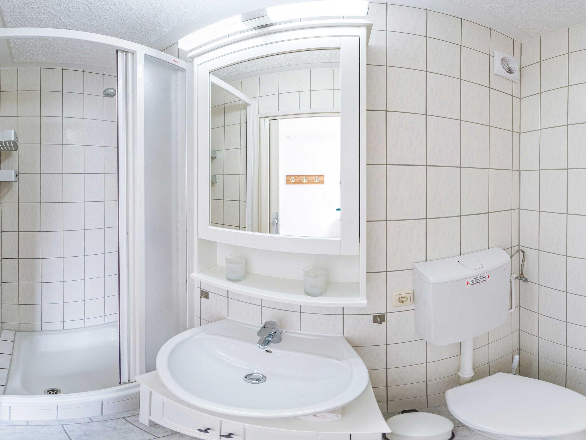 Zum Ferienzimmer gehört ebenfalls ein kleines Bad mit Dusche und WC.