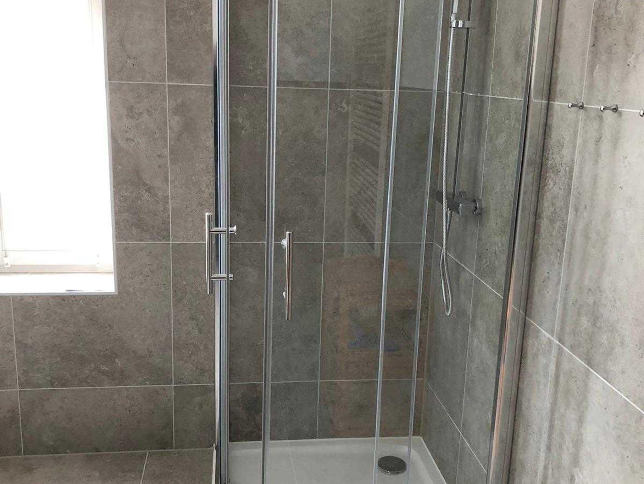 * Badezimmer mit Dusche, Waschtisch, WC und Fön