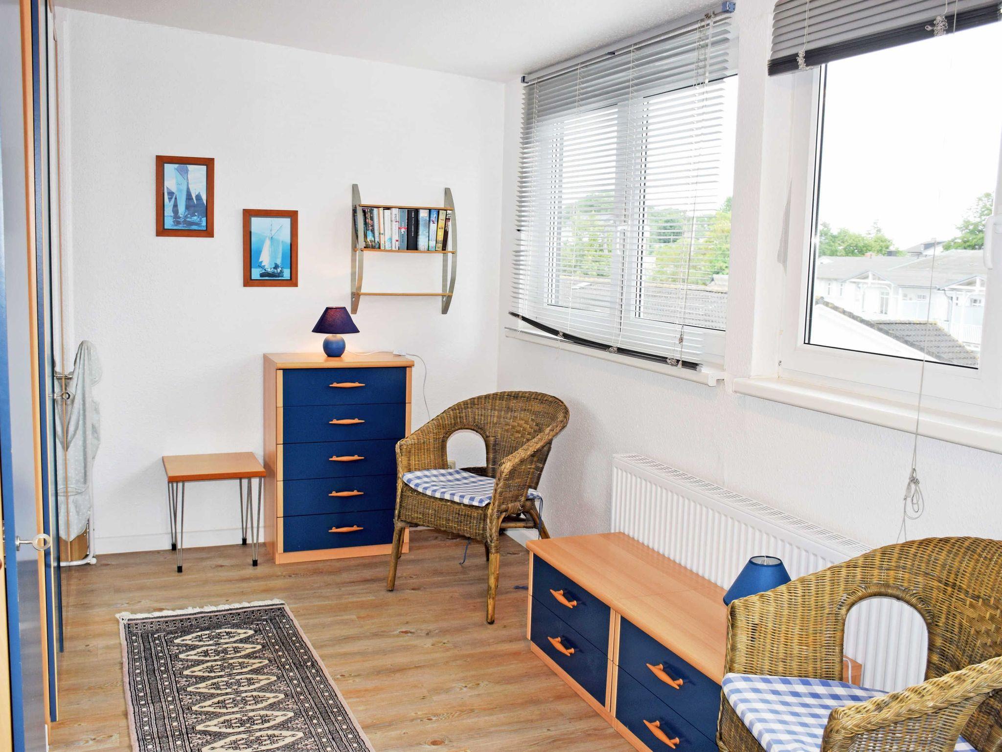 Der Wohnbereich ist hell und freundlich eingerichtet, von 3 Seiten lichtdurchflutet,mit einem Komfortschrankbett intregiert in die Schrankwand. Der überdachte Balkon davor gibt den Blick zur See frei und ist mit Tisch und Stühlen bestückt. Einen Fernseher (Kabelanschluss) und eine Stereoanlage zur Ihrer Unterhaltung finden Sie auch im Wohnbereich vor, wir bieten Ihnen freies WLAN.