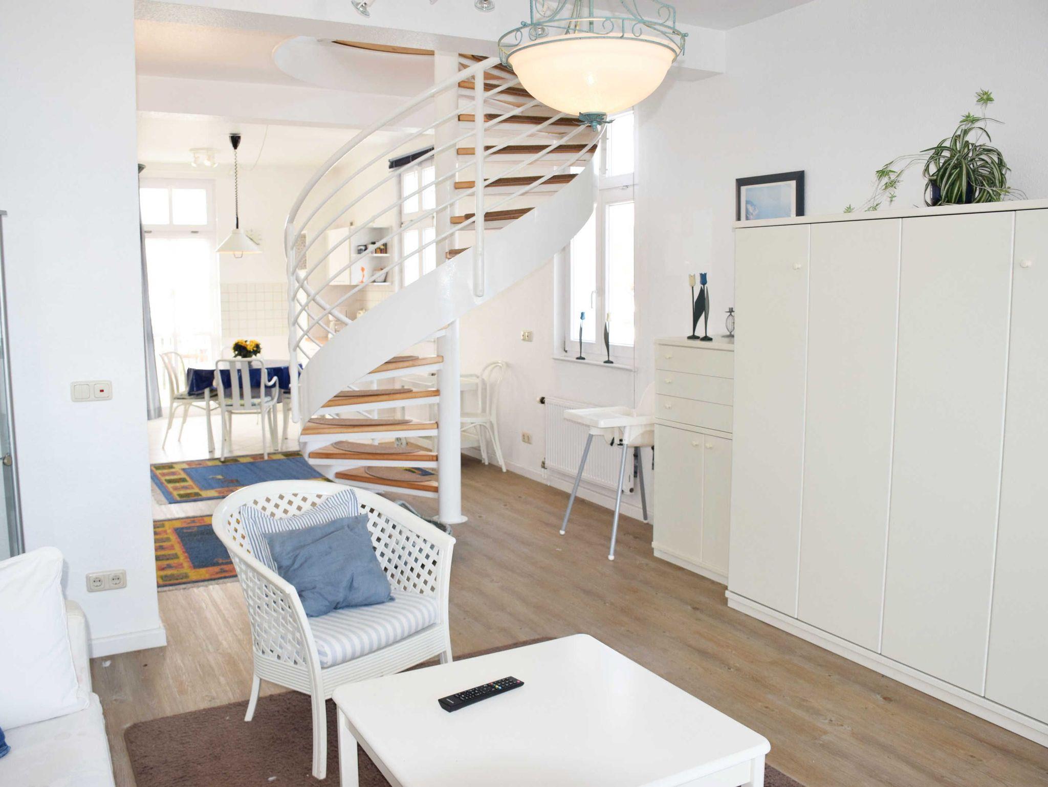 Die Wohnung Nr. 9 hat 78 m² Wohnfläche,befindet sich im Haupthaus in der 2. Etage und ist als Maisonette - Wohnung über 2 Ebenen mit Wendeltreppe gebaut. Sie bietet Ihnen 3 Zimmer, WLAN, Duschbad und zwei Balkone, einer davon mit herrlichen Blick zur Ostsee, der andere über die Dächer des Ortes.