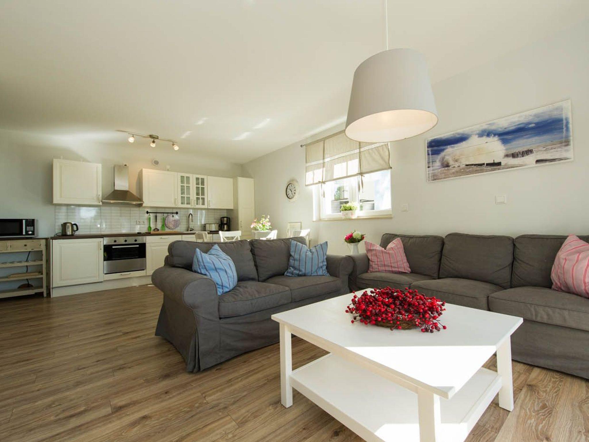 Sowohl für Familien, als auch zu zweit oder 2 befreundete Paare stehen Ihnen hier sehr schöne und hochwertig ausgestattete 3-Raum-Ferienwohnungen zur Verfügung. Alle Ferienwohnungen sind modern eingerichtet und verfügen u. a. über 2 Schlafzimmer und Meerblick. Die Wohnung Nr. 2 bietet darüber hinaus auch einen Kamin.