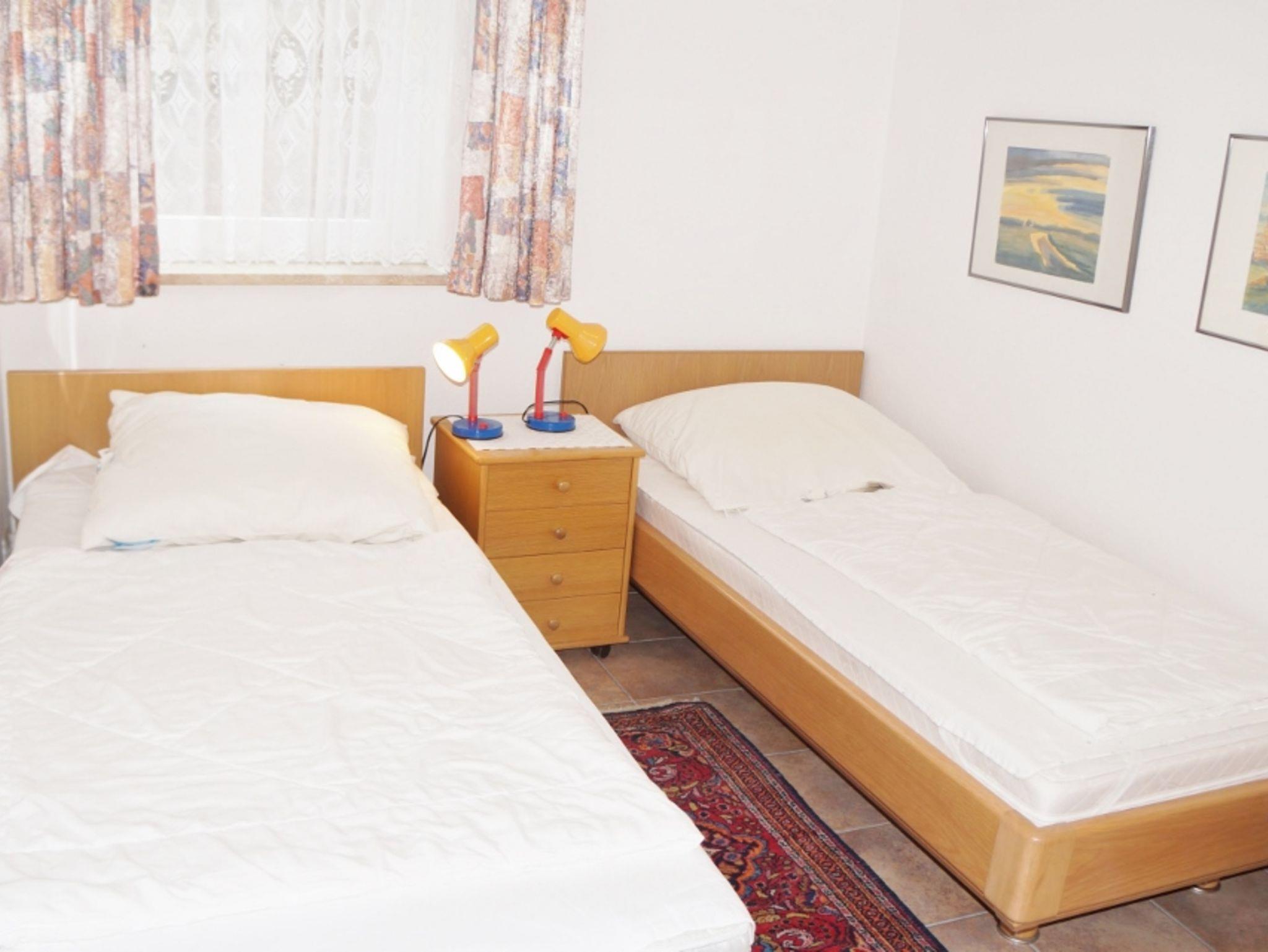 Sie besteht aus einem Wohnraum mit TV und Essbereich, 2 Schlafräumen (einmal mit Doppelbett und einmal mit zwei Einzelbetten), abgeschlossener und komplett eingerichteter Küche mit Backofen, 4 Plattenherd, Wasserkocher, Kaffeemaschine usw. Ein Badezimmer mit Dusche und WC ist in der Wohnung verhanden.