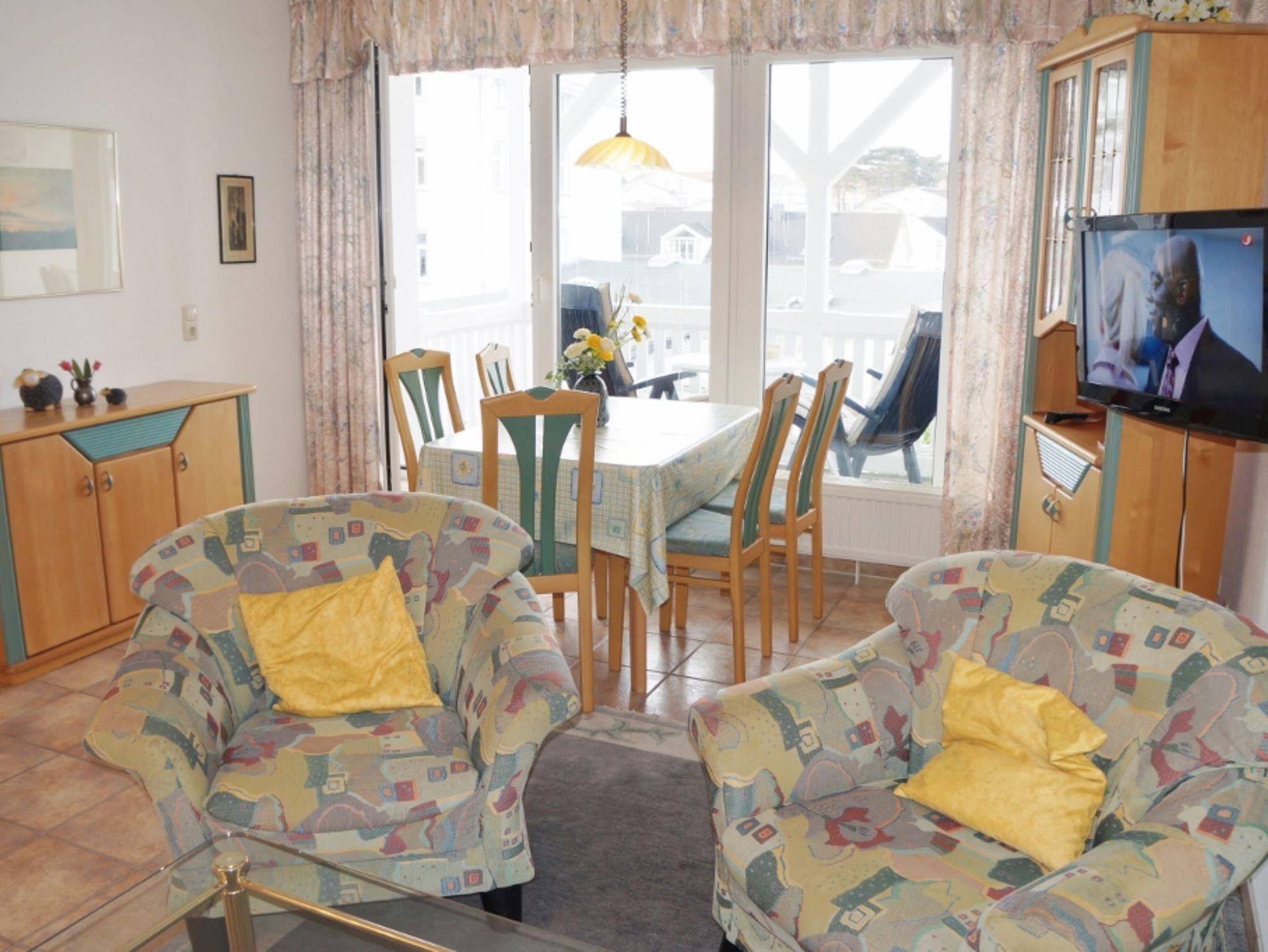 Die Ferienwohnung mit großem möbilierten Balkon als auch gemütlicher Ausstattung befindet sich in der Hochparterre im Haus Nordstrand mit Bäderarchitektur.