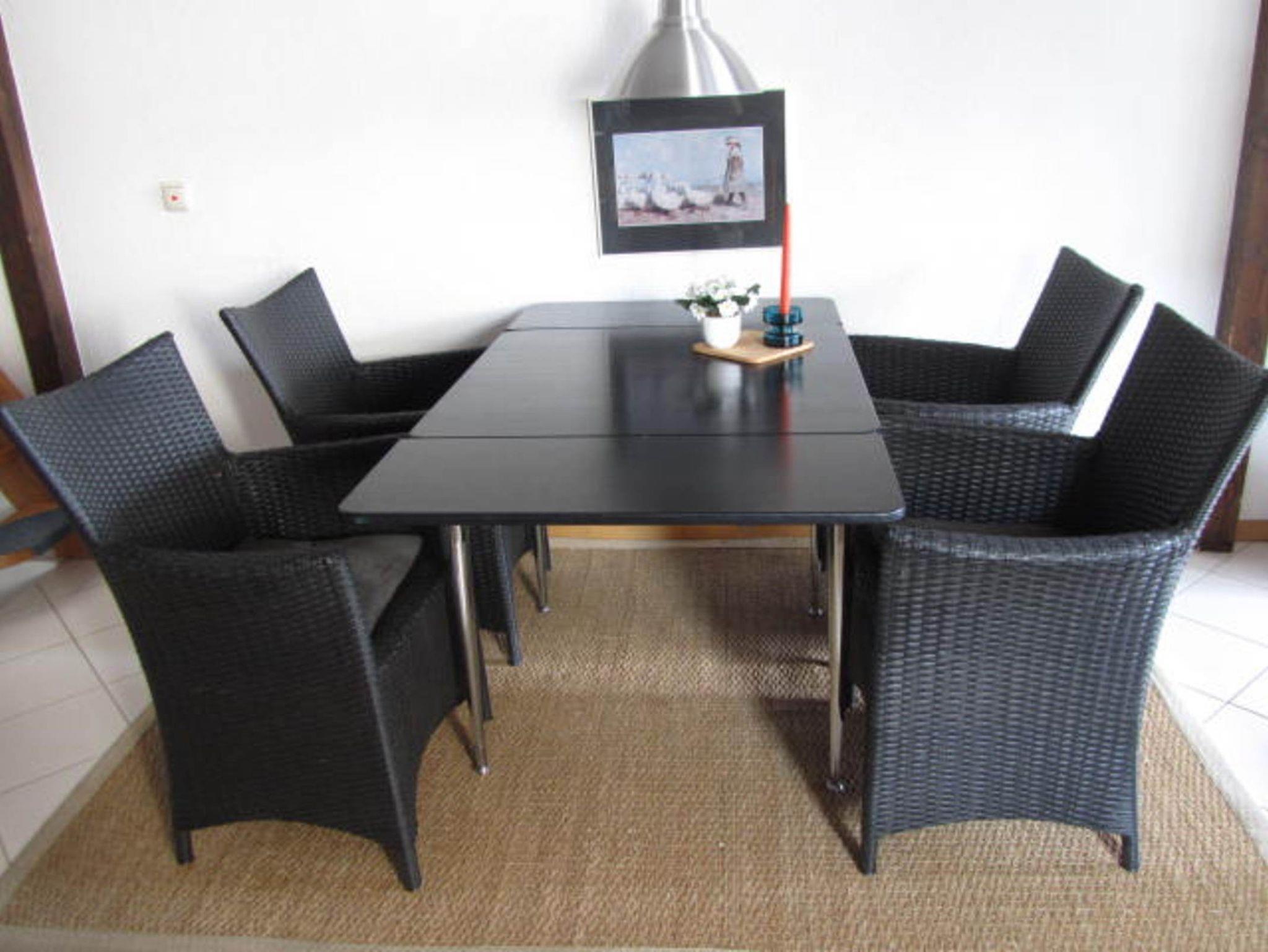 In der 1. Etage befinden sich Küche, Essecke und Wohnbereich mit Blick direkt zur Ostsee. Der Wohnbereich ist komfortabel eingerichtet, Sie finden dort einen Farbfernseher (Kabelanschluss) und eine Stereoanlage vor.