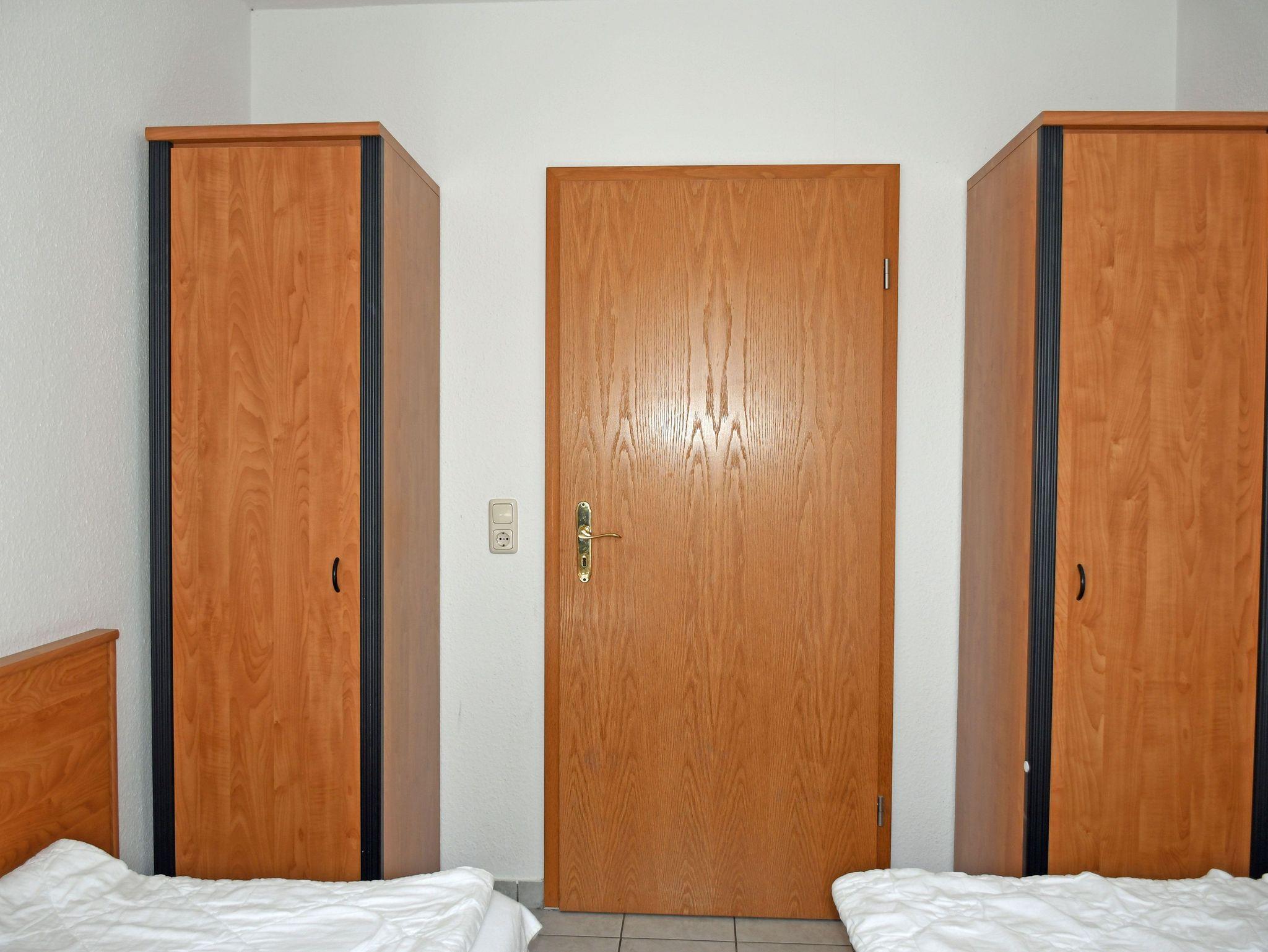 · Schlafzimmer mit 2 Einzelbetten (in der Fewo 18 Etagenbett) und kleinem Schreibtisch