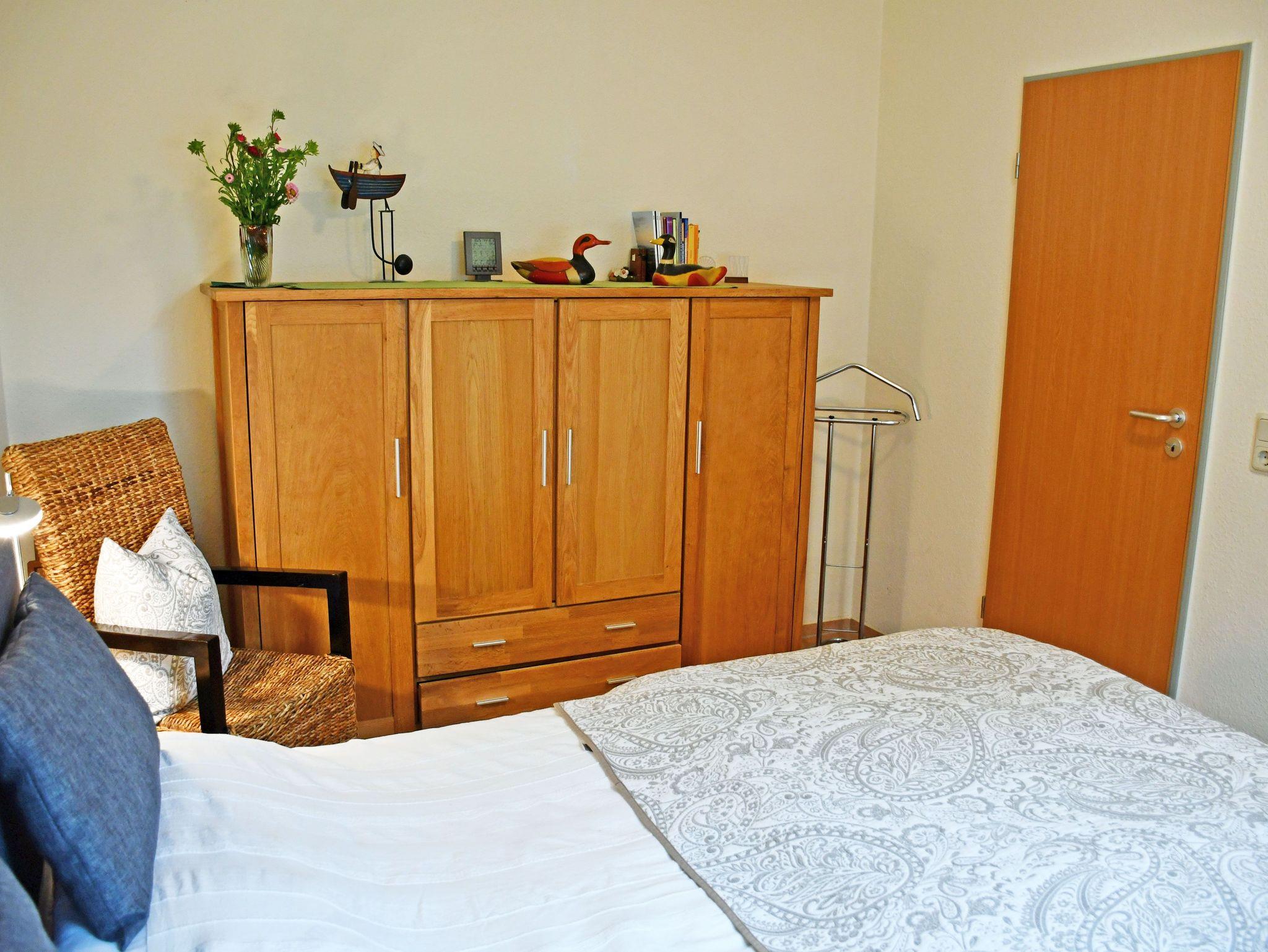 * Schlafzimmer mit Boxspringbett 1,80m x 2,00m, mit Kleiderschrank und Nachttischen