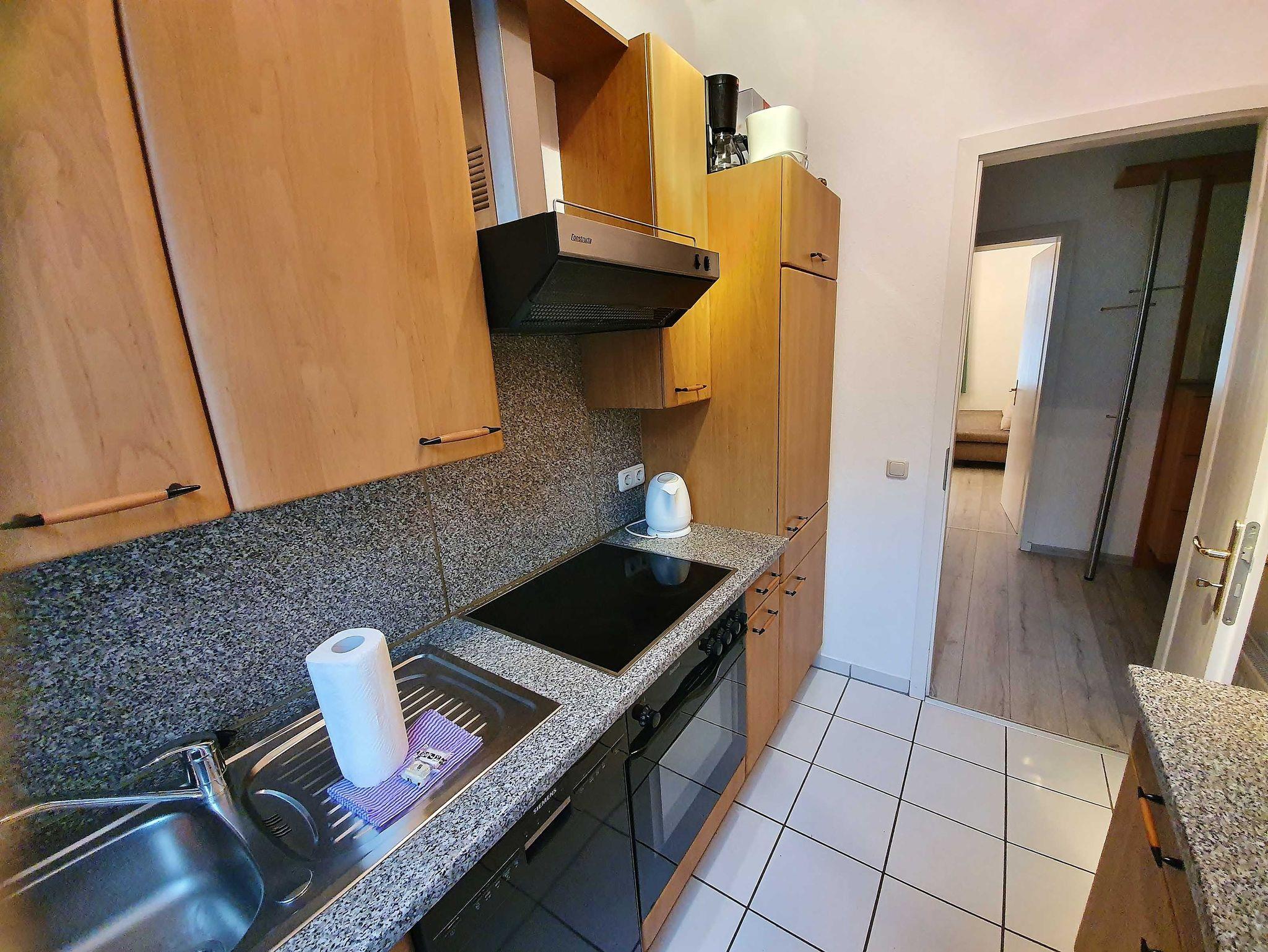 * separate Küche mit Geschirrspüler, Backofen, 4-Platten-Ceranfeld, Mikrowelle, Kühlschrank, Kaffeemaschine, Toaster, Wasserkocher sowie kompletten Küchenutensilien
