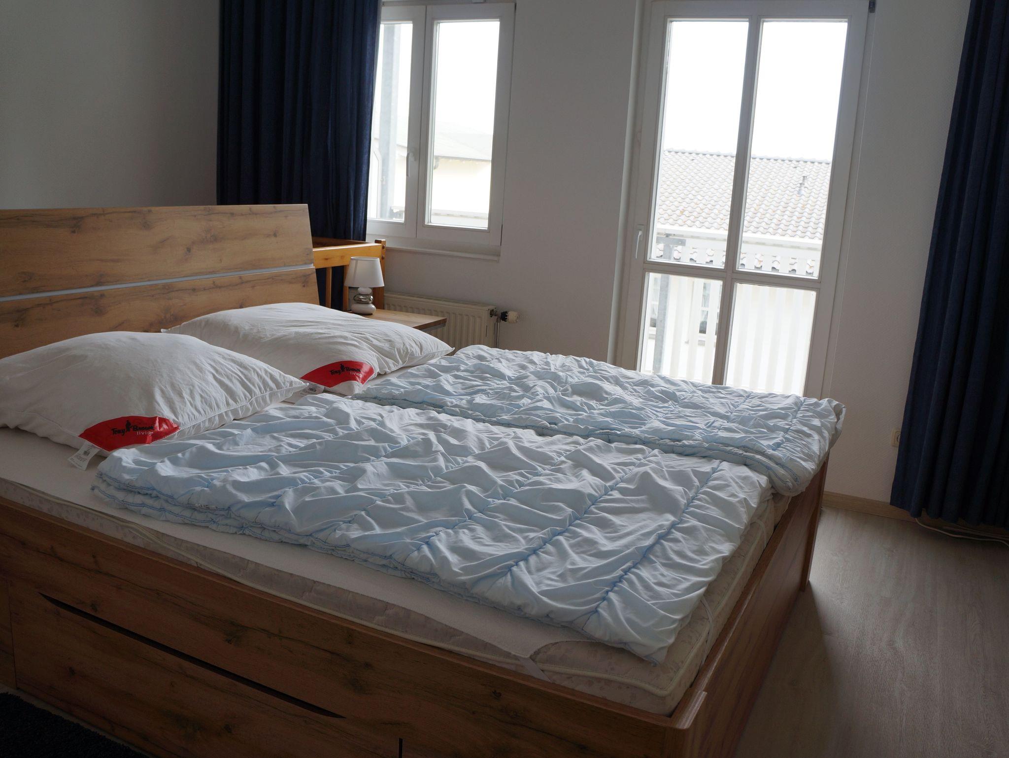 Die Nichtraucherwohnung bietet Ihnen ein geschmackvoll und gemütliches - mit zwei Schlafcouchen, einer kleinen Anbauwand, einem Flachbild-TV, DVD-Player und Stereoradio - eingerichtetes Wohnzimmer. Der Fußboden ist komplett gefliesst. Der Schlafraum in der oberen Etage ist mit einem Doppelbett, einem geräumigen Kleiderschrank und TV ausgestattet und verfügt über Auslegware. Abgerundet wird das Wohnambiete durch sich an beiden Räume anschließende, jeweils getrennt zu betretende Balkone, welche zur Ostsee ausgerichtet sind und einen kleinen Blick auf das Meer gewähren. In der zweckmäßig über Eck eingerichteten Wohnküche finden Sie neben dem üblichen Standard einen Herd mit 4 Kochplatten und Backofen, sowie einen Geschirrspüler.