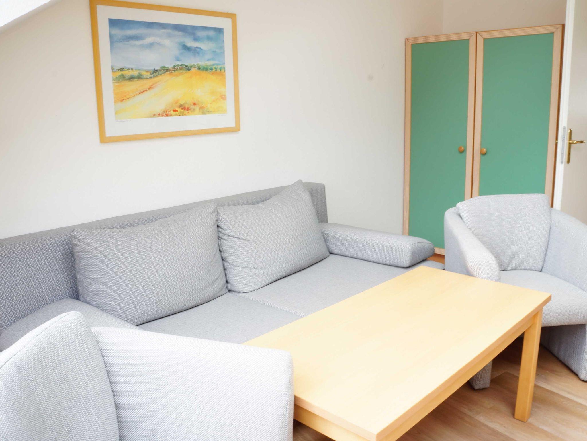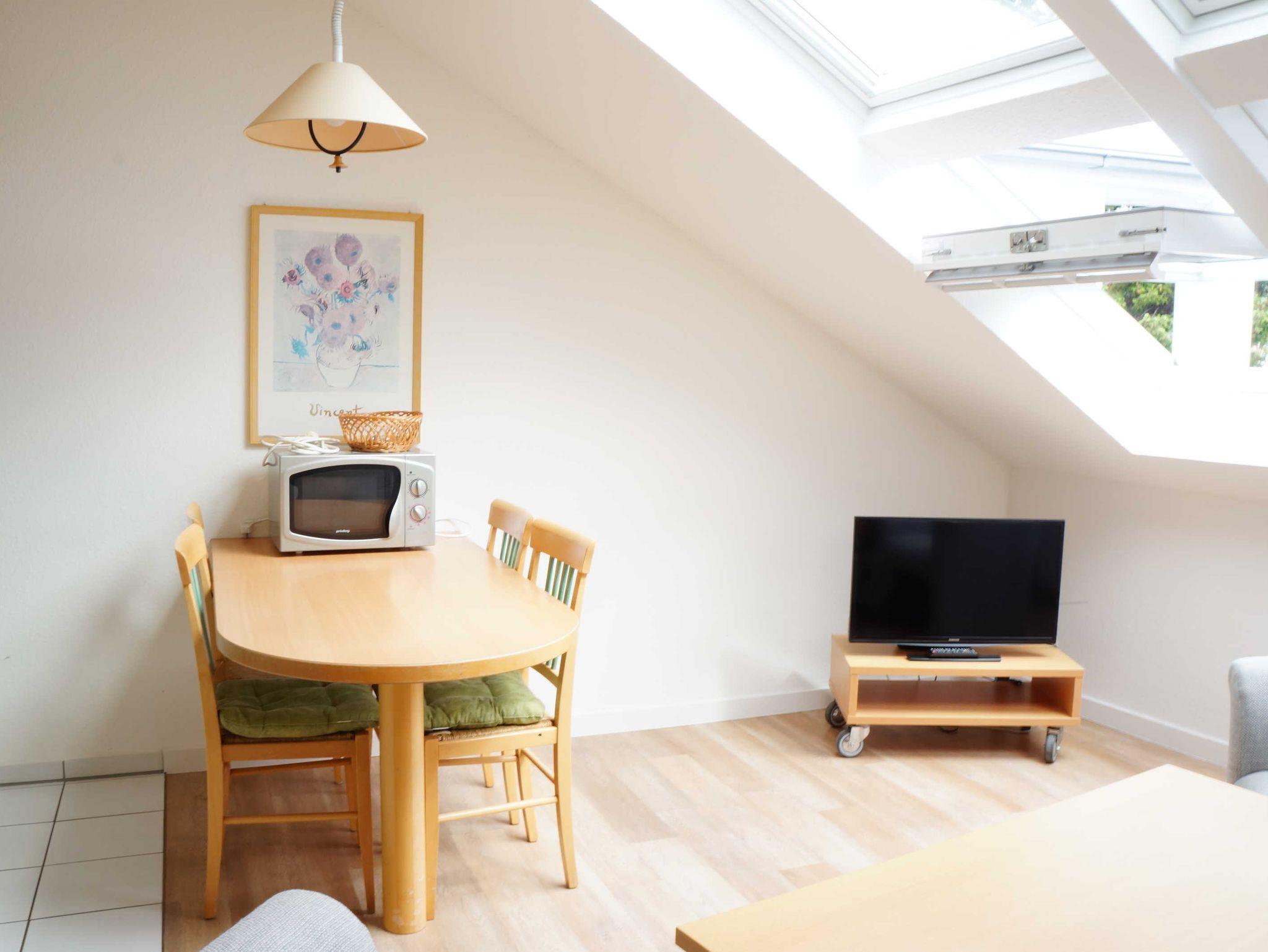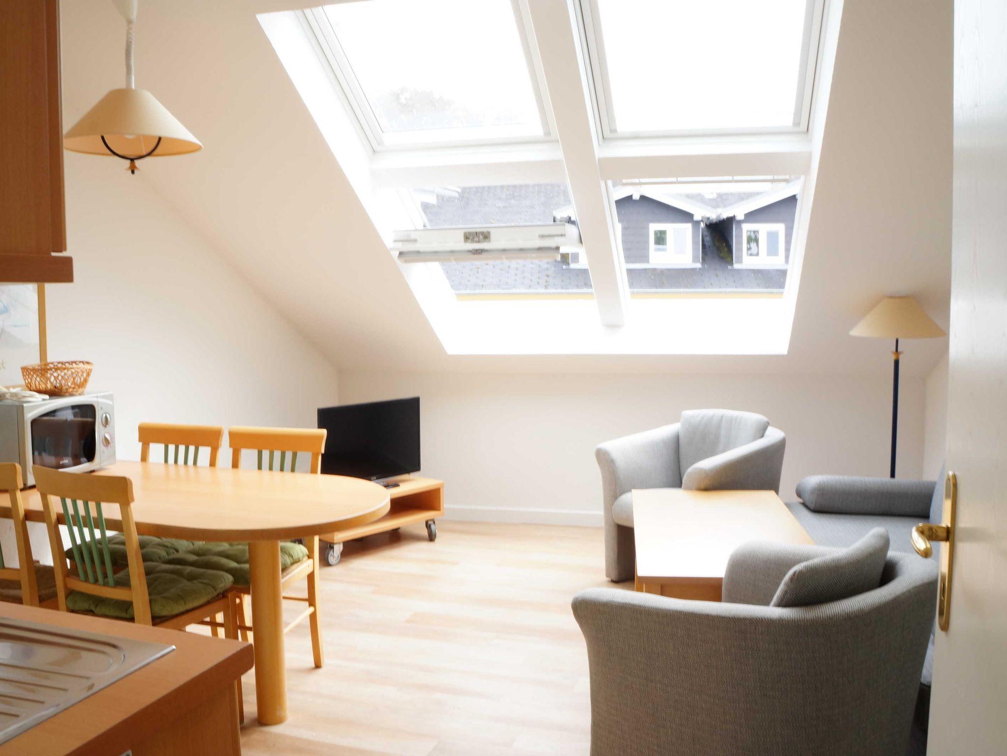 Das modern ausgestattete 2-Raum-Nichtraucher-Appartement im Dachgeschoss ist 34 m² groß.