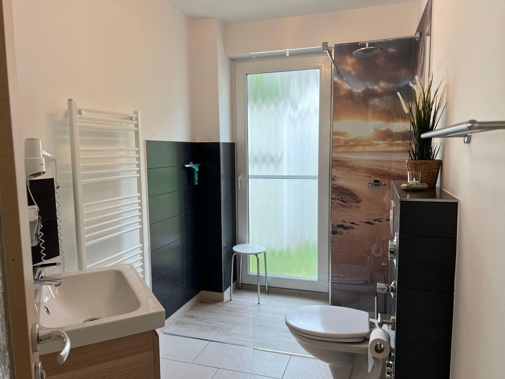 • Bad mit Dusche, WC, Handtuchwärmer und Haartrockner