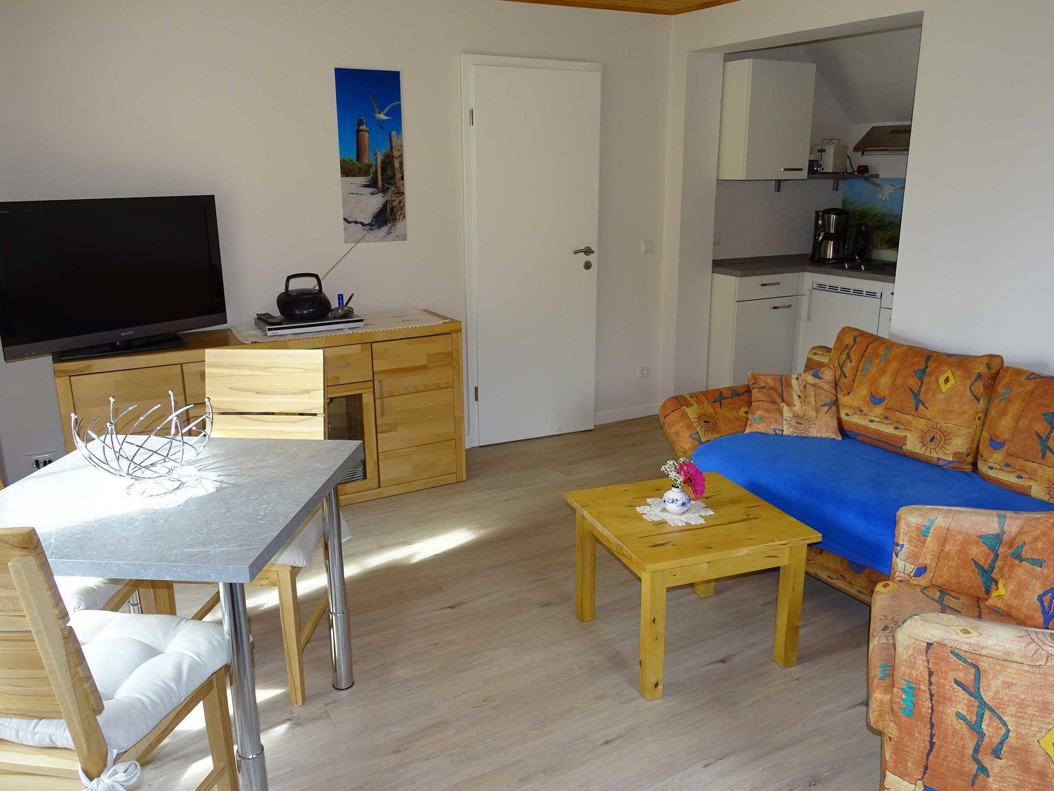 Ferienwohnung ( ca. 35 qm ) liegt ruhig im Erdgeschoss und ist für 3 Personen ausgestattet. Zur Wohnung gehört eine Terrasse mit Gartenmöbeln.