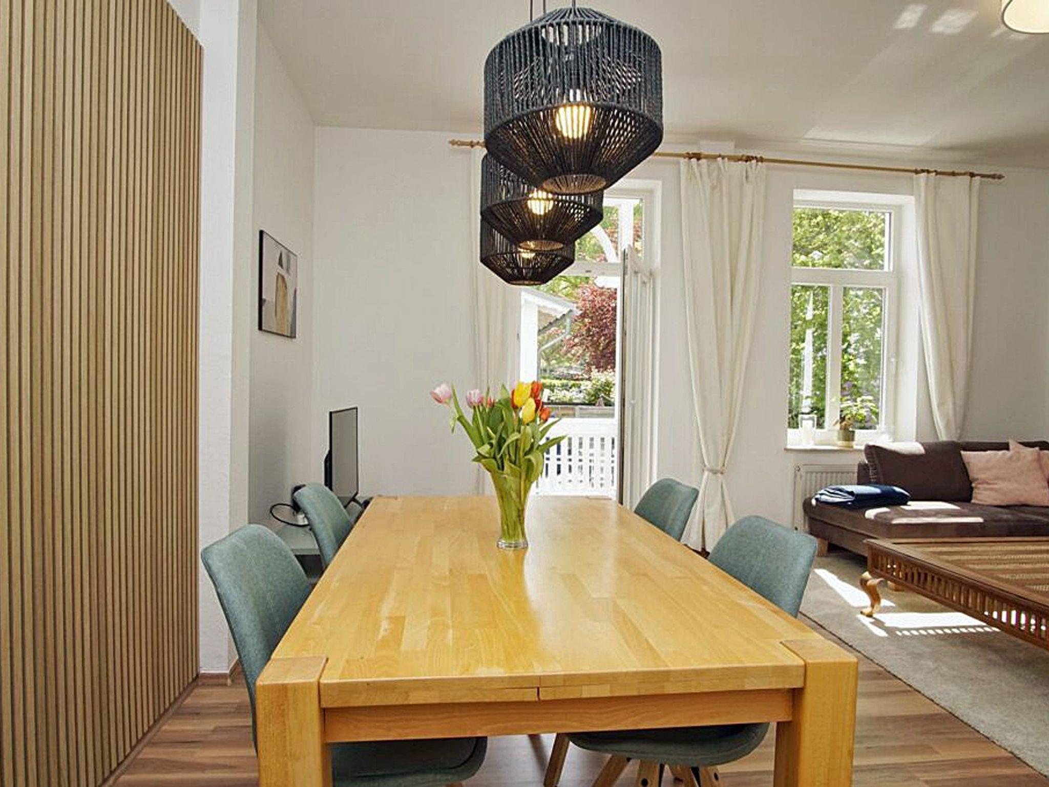 Zu Gaststätten und Einkaufsmöglichkeiten sind es ebenfalls nur wenige Meter Entfernung. Die Haltestellen der öffentlichen Verkehrsmittel befinden sich in unmittelbarer Nähe, die Endhaltestelle oder der Bahnhof für den „Rasenden Roland“ erreichen Sie in 10 Minuten. In der Ferienwohnung sind weitere Tipps und Details zu wichtigen Adressen und Ausflugsmöglichkeiten vorhanden.